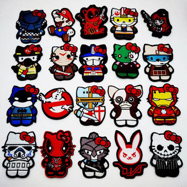 Laser cutting edge stickers anime cartoon patch Predator armband Iron Man Mario embroidery Velcro