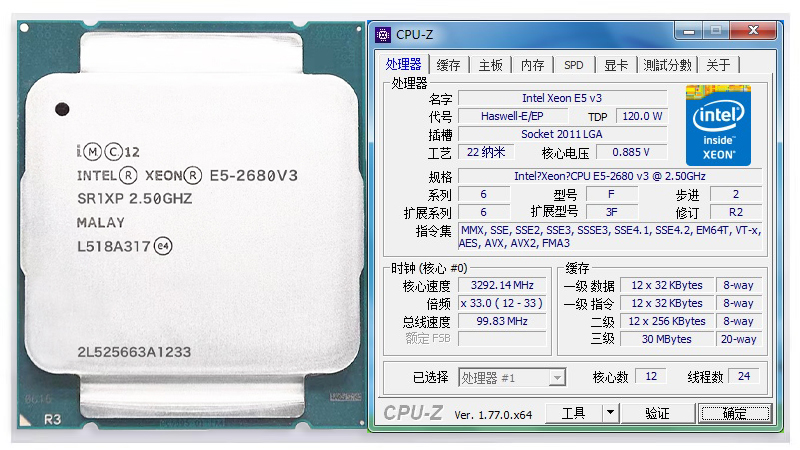 Intel xeon Xeon XeonE5 2680V3 CPU 2 5Ghz 12 core 24 executed in 2011 official edition