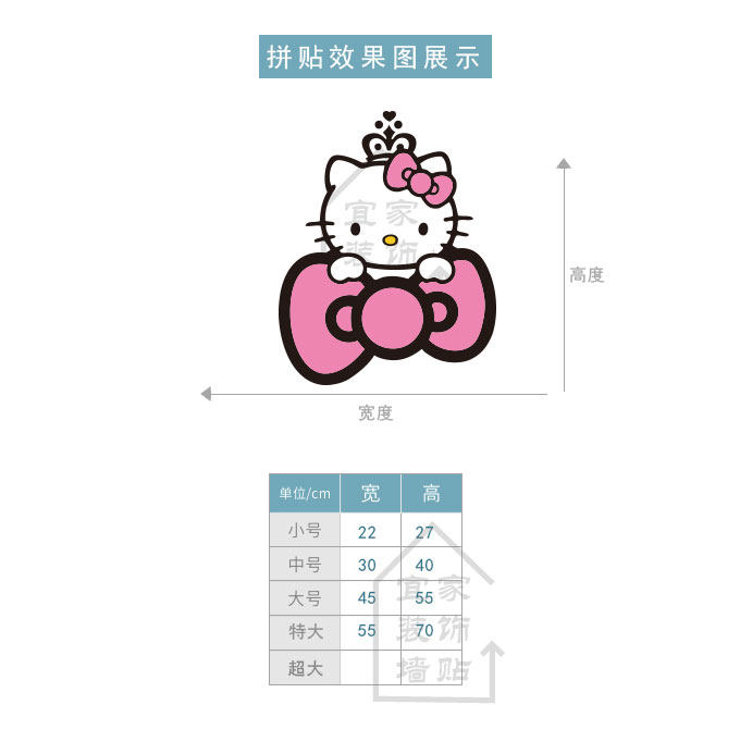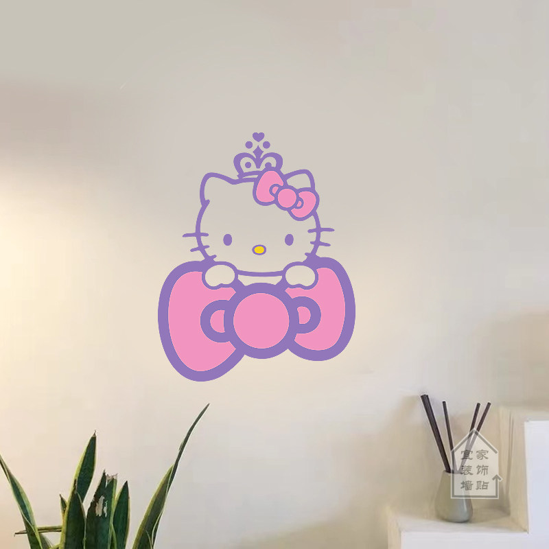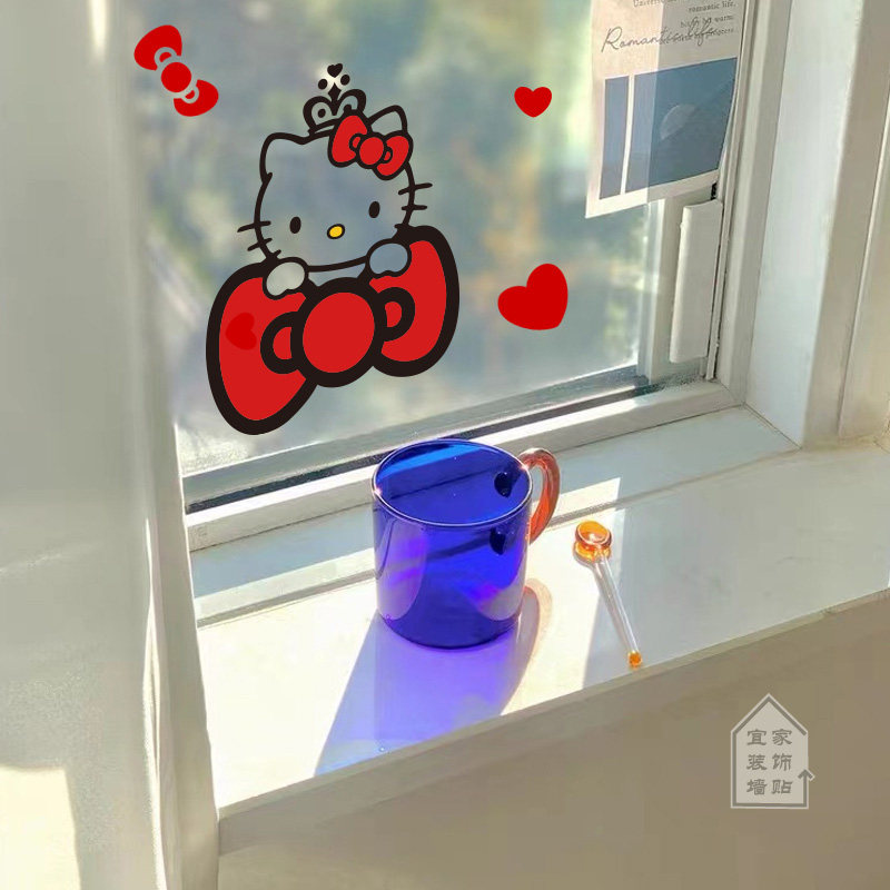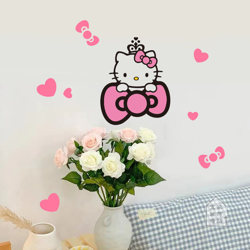 Hello Kitty cat crown bow cute cartoon wall sticker girl bedroom cabinet door sticker waterproof glass sticker