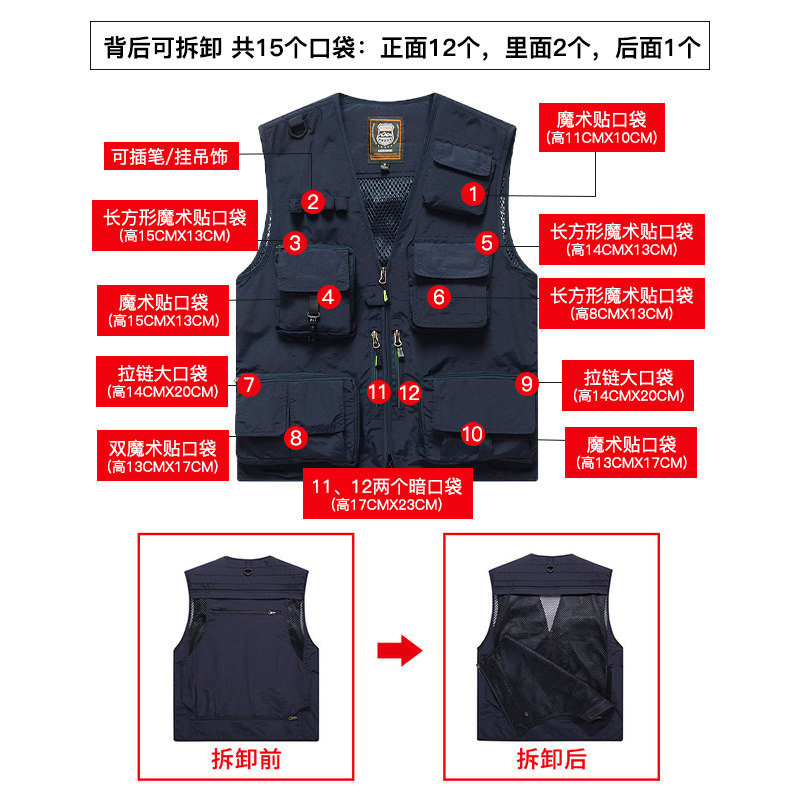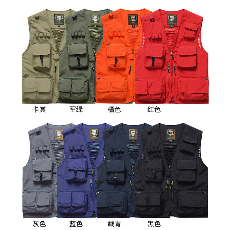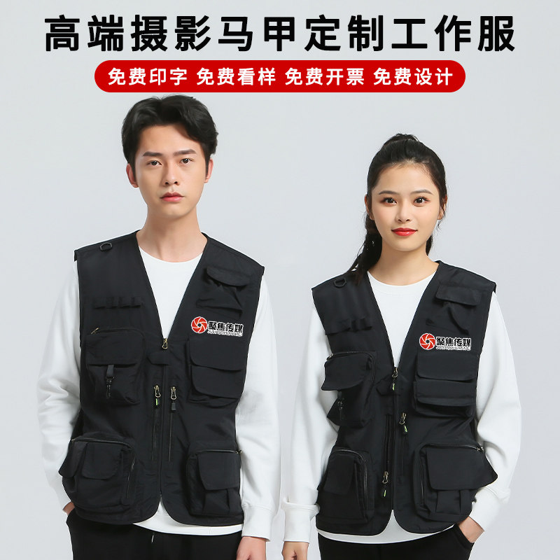 Workwear vest men's outdoor leisure photographer photo studio vest custom printed logo word overalls director's vest