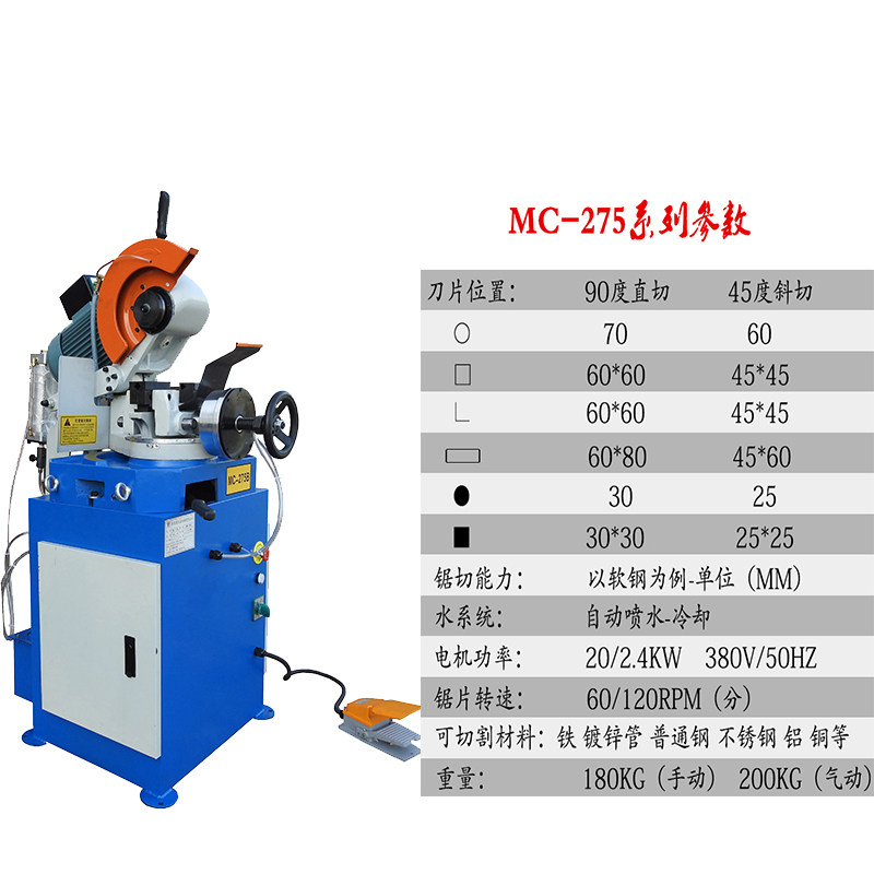 Semi-automatic 315 water saw cutting burr-free pipe cutting machine oblique cutting pneumatic metal circular saw machine iron aluminum steel cutting machine