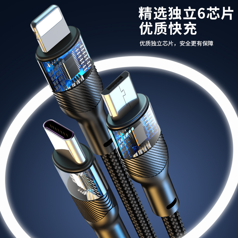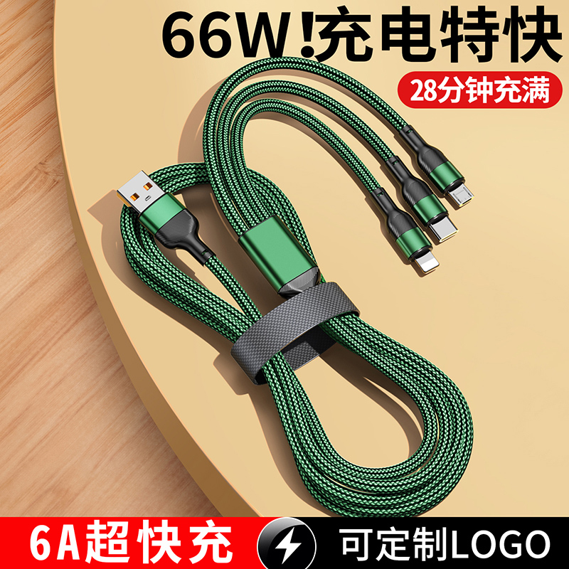 KWU 66W Super Fast Charge Scale Data Line Three in-one Gift Customized Logo Mobile Car Charging Line One Drop Three Apple Huawei Type-c Android USB Long General Flash Charging