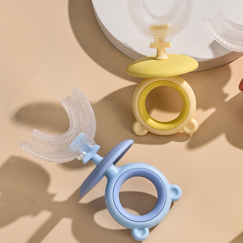 Children's u-shaped toothbrush manual baby 2 to 3 years old 4 and a half 6 to 12 years old silicone soft hair child special brushing artifact 5
