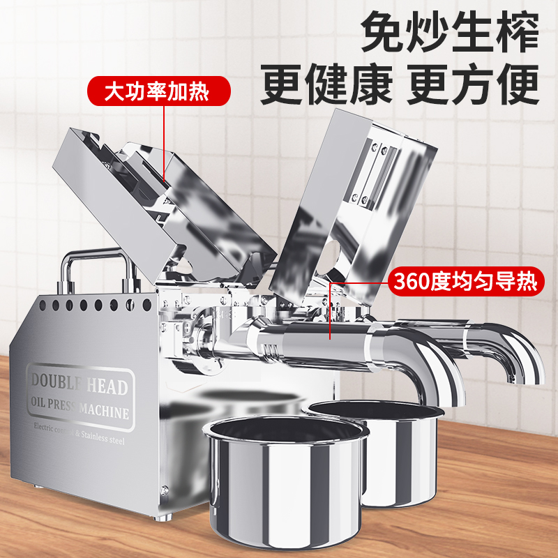 B02 oil press double head double motor double speed stainless steel household automatic new technology small cold and hot pressing commercial