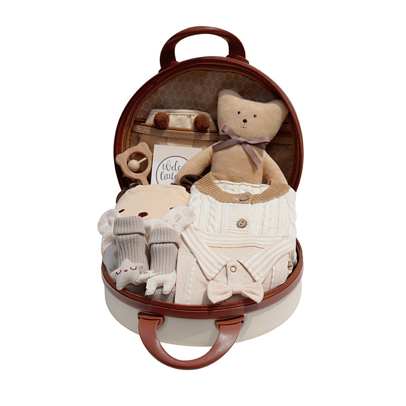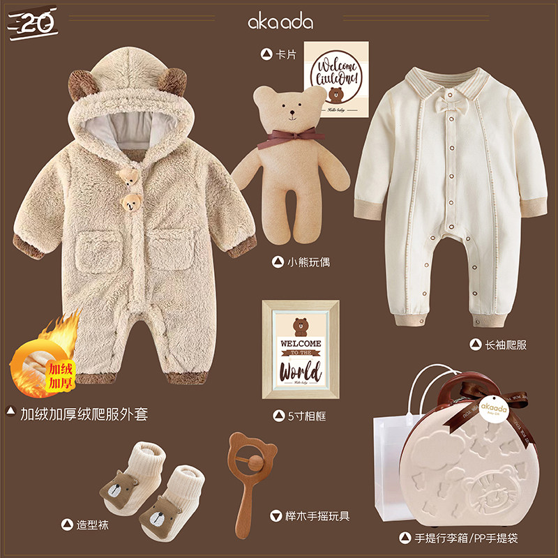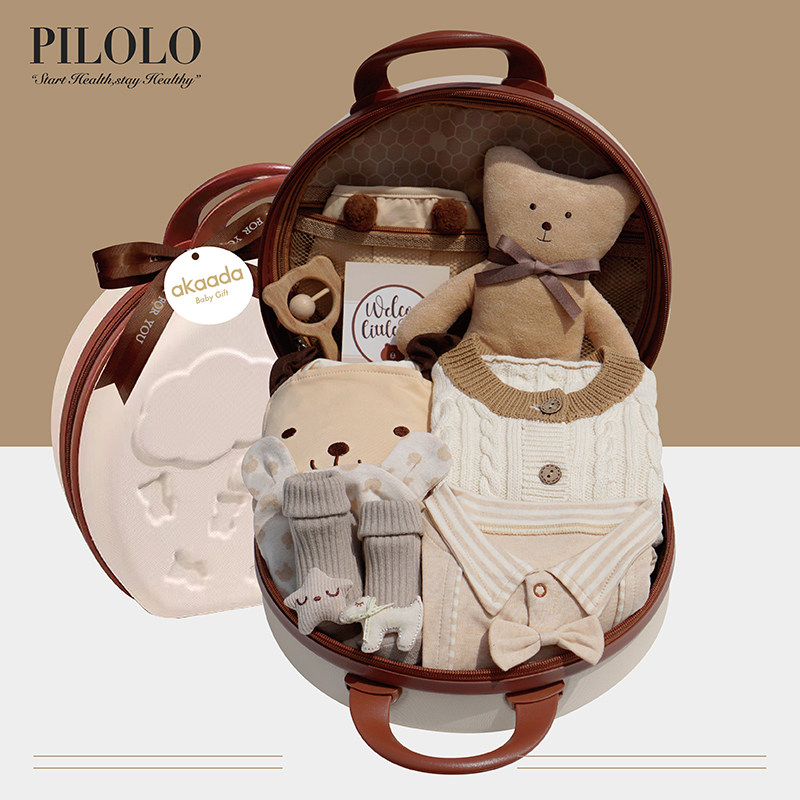 Spring and autumn newborn baby gift box neutral cartoon organic color cotton clothes suit beech wood toy full moon birthday gift