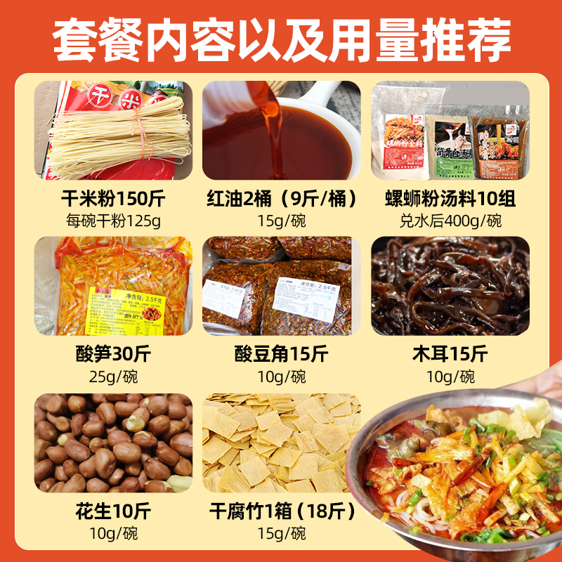 Guangxi snail powder seasoning packet combination full set of commercial snail powder soup stock Home containing rice flour open shop Ingredients Bag-Taobao