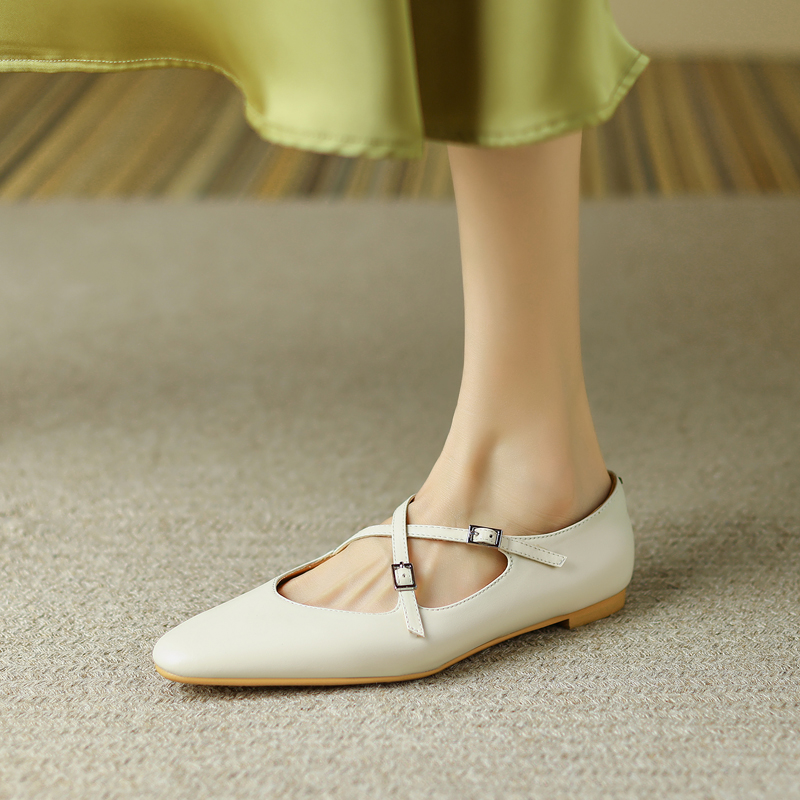 French elegant gas silver cross tip with tip Mary Jane shoes 2022 new shallow flat soles