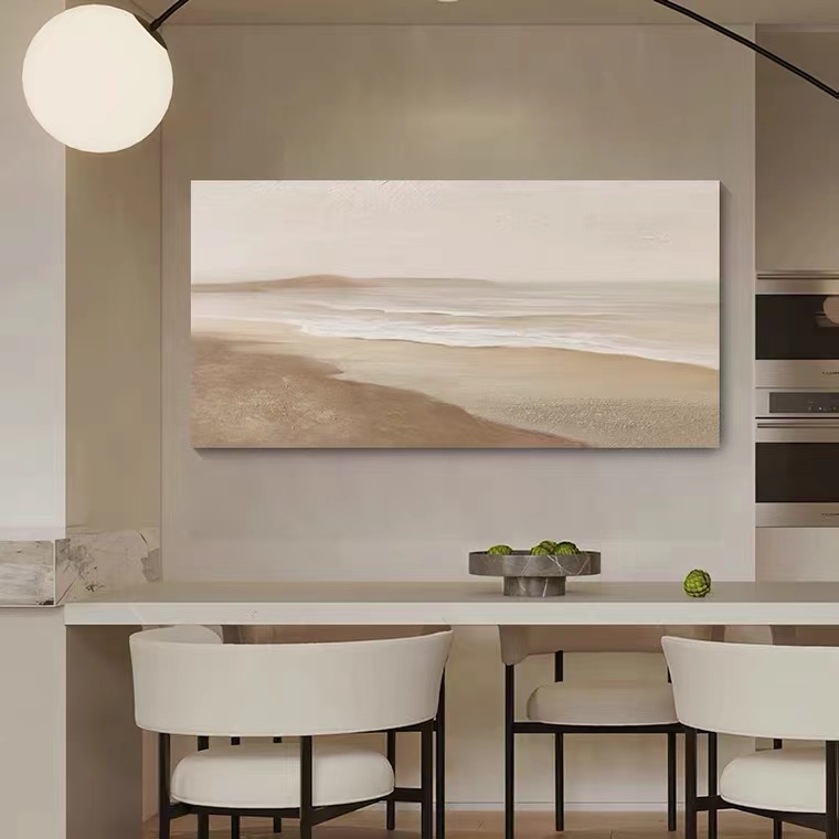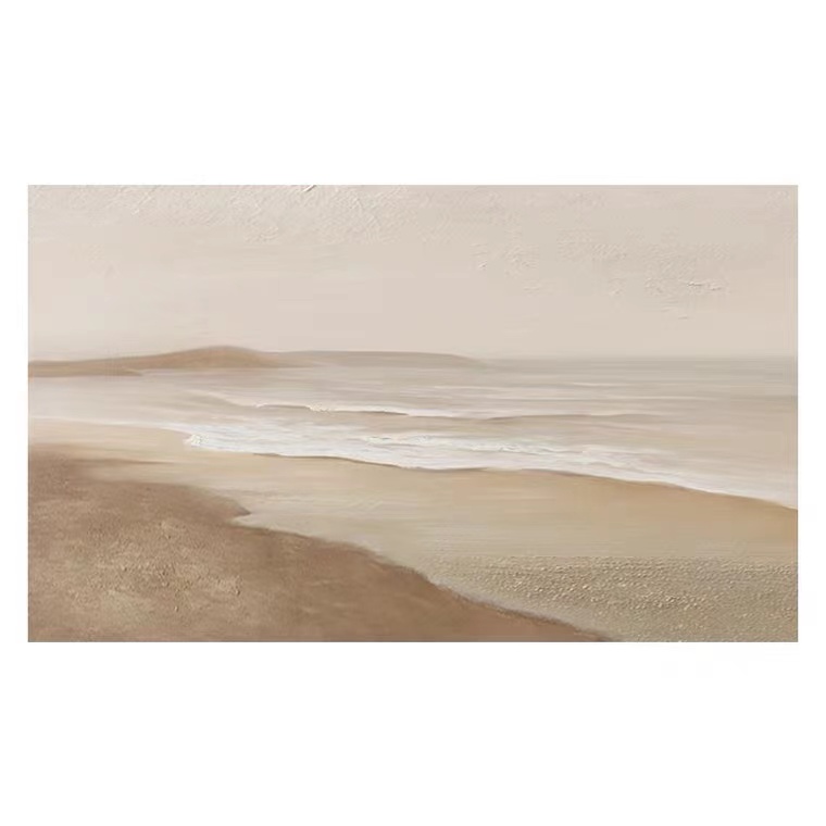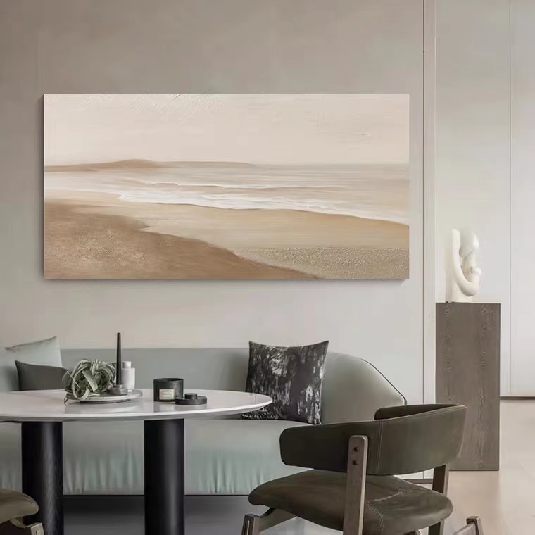 Hand-painted oil painting living room three-dimensional horizontal version large size thick texture beach wave hanging painting wabi-sabi style minimalist decorative painting - Taobao