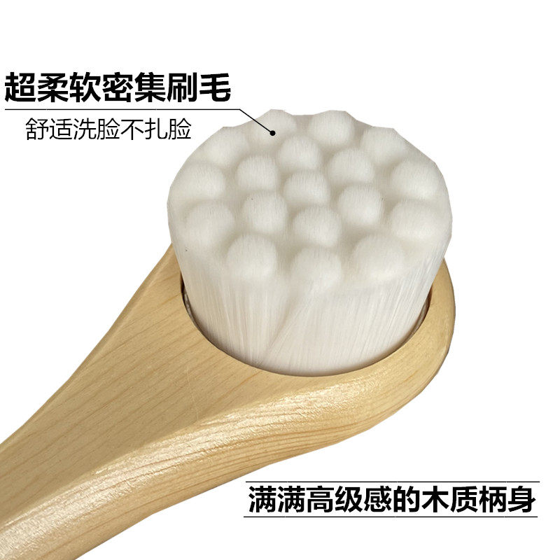 Japan imports large wooden handle wash face brush manual soft hair wash face wash face artificial cleaning pore belt hanging rope