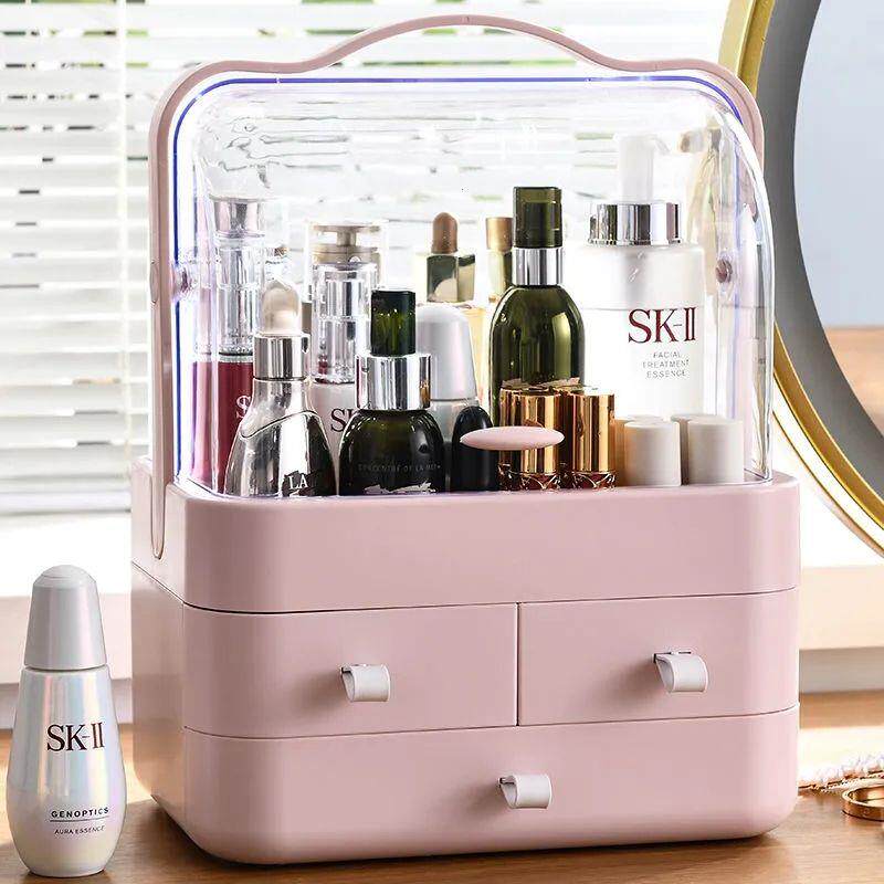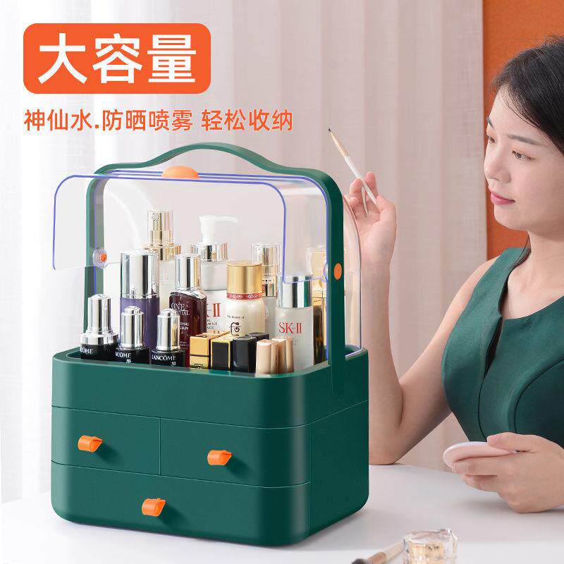 Cosmetics storage box high-end desktop sundries 2021 new jewelry skin care product rack dust-proof and covered