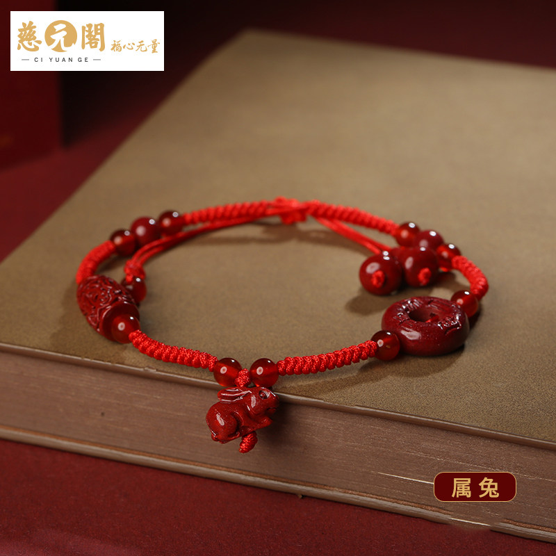 Tzu Yuan Cabinet 24 years Zhu Sands Sheng Xiao Red Rope Foot Chain Women's Life Birth Zodiac Family Dragon Bull Dog Rabbit Foot Rope Couple Gift-Taobao