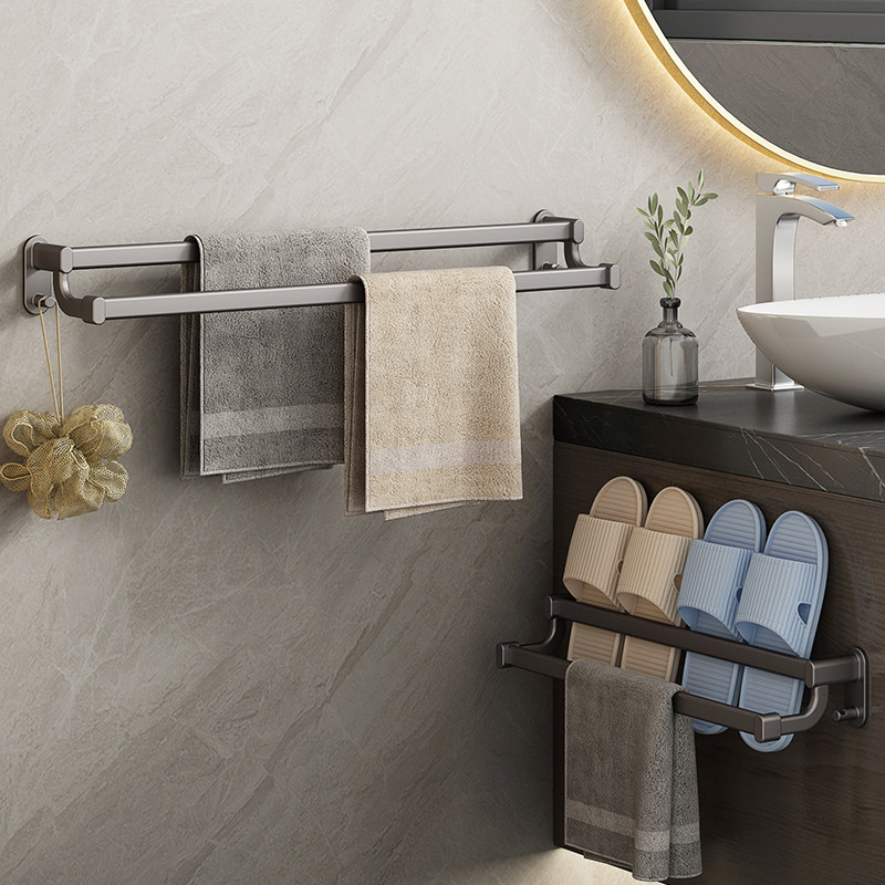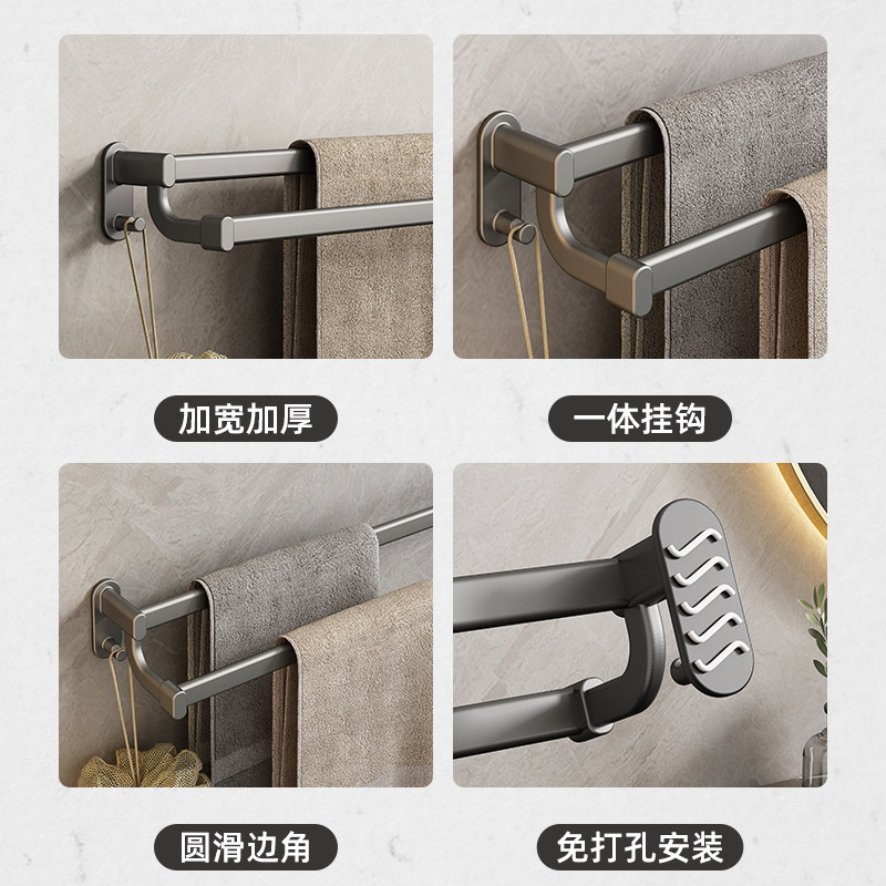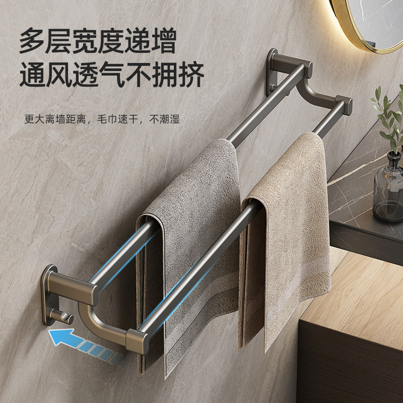 Gun Grey Double Pole Fur Towel Rack Free to punch toilet cool towel rod Single-pole bathroom shelving toilet bath towel rack-Taobao