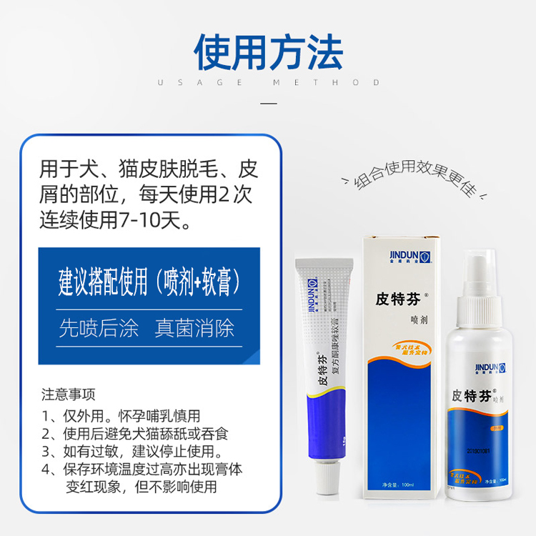 Jindun Pitefen spray ointment pet cat moss dog skin disease anti-inflammatory fungi mites eczema and itching external medicine