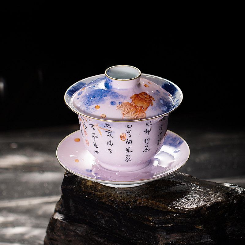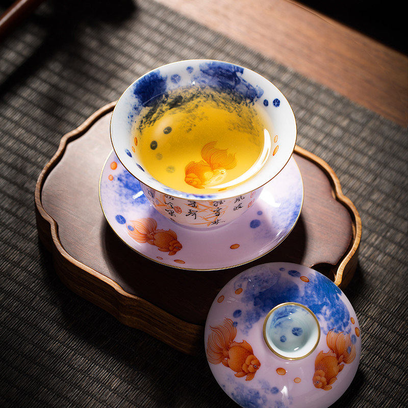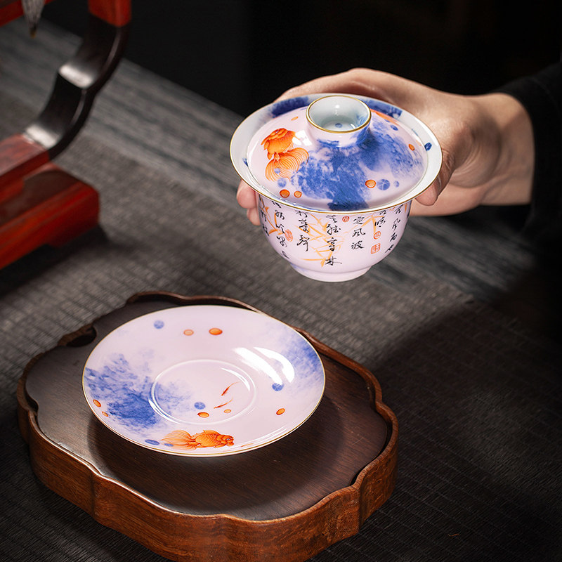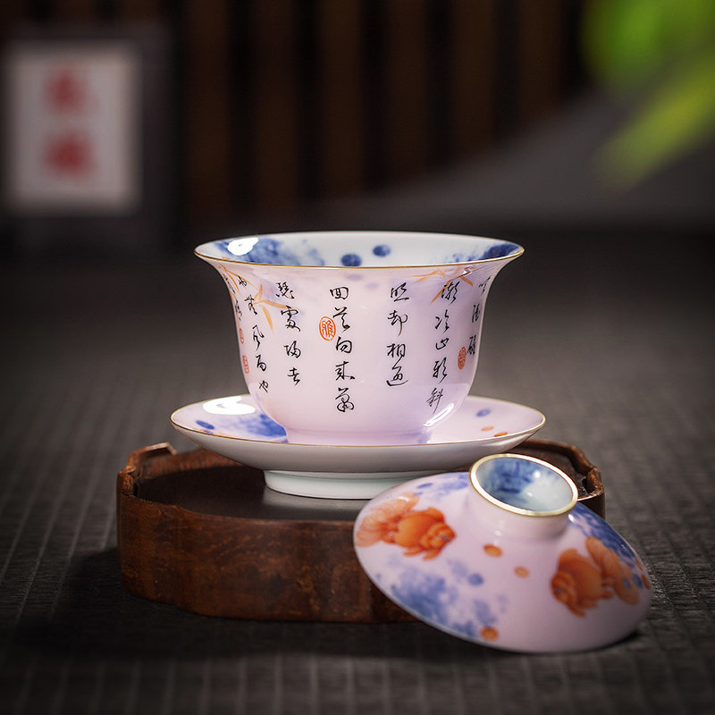 The Lord Kiln Green Blossom Alum Red Glaze Thin Tire Handmade Ceramic Kutian Tea Lid Bowl Teacup Cup of Three Only Cup Bubble Tea Bowl