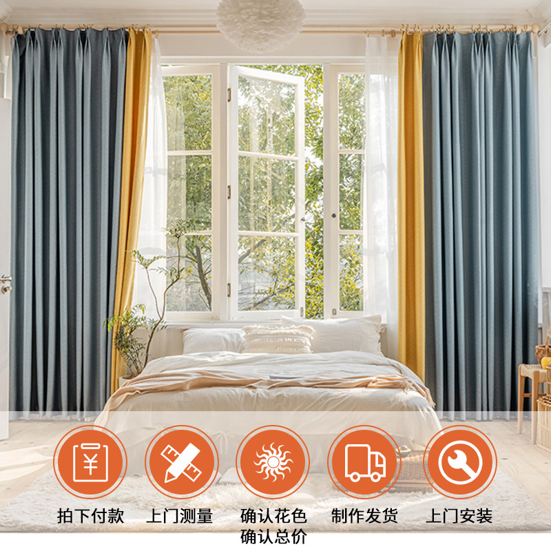 Full house Custom Shoxingko Bridge Curtains Bedroom Shading 2023 new high-end light lavish modern minimalist living-room floating window-Taobao