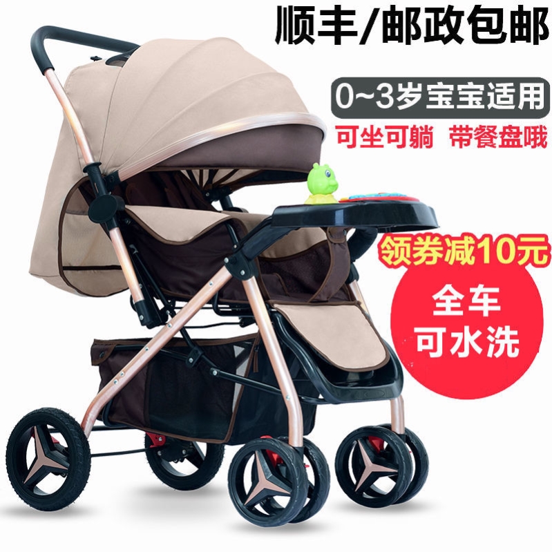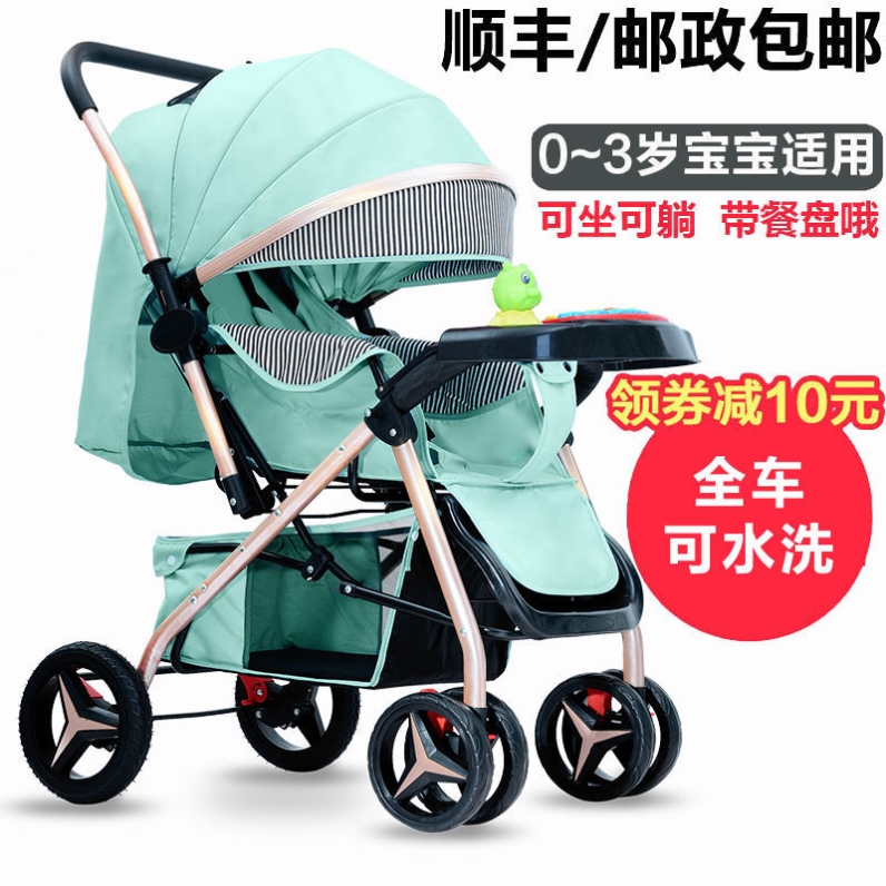 The stroller can sit and lie down from 0 to 3 years old, the stroller can increase the space, and the trolley can be folded and lightened with one button.