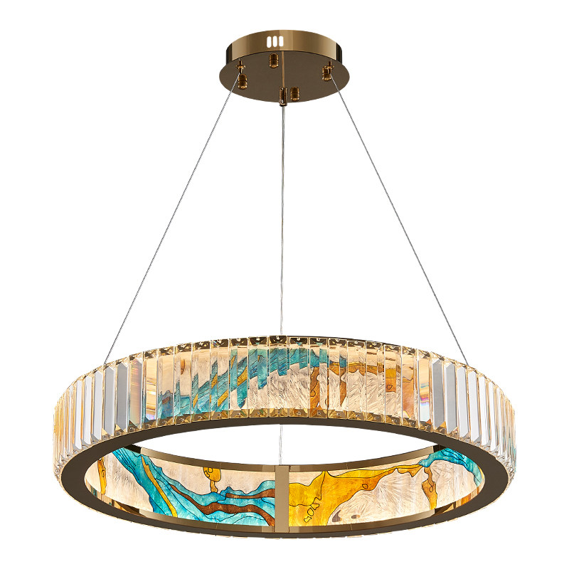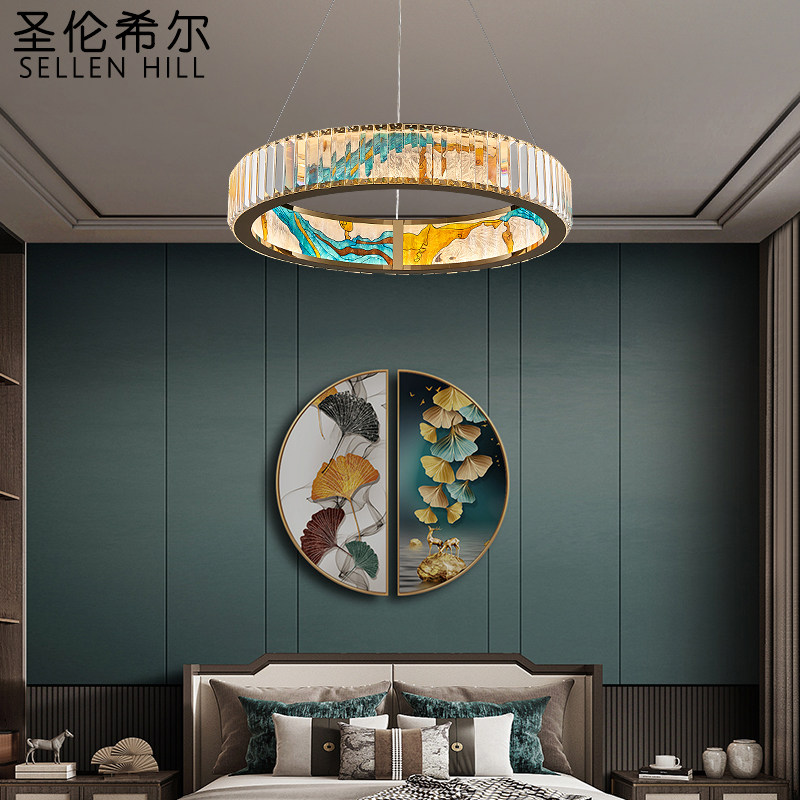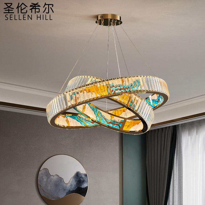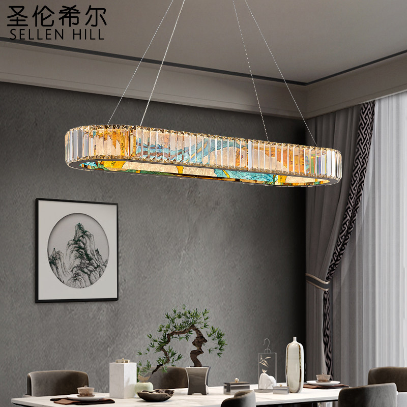 New Chinese Crystal Chandelier Stainless Steel Enamel Color Restaurant Bar Terrace Light Extravagant Staircase Creative Personality Designer Living Room-Taobao