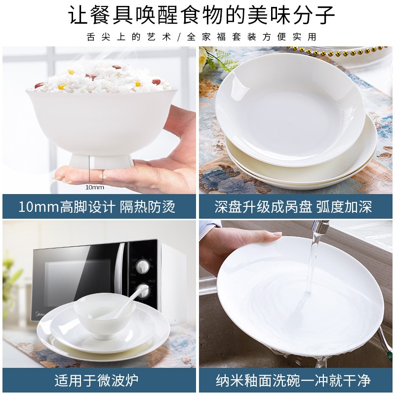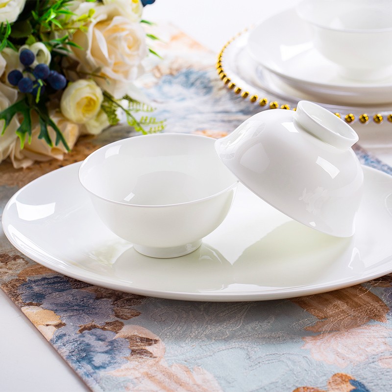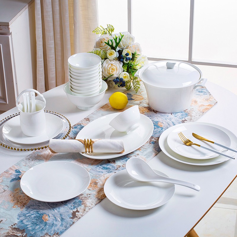 Glazed color tableware dish suit for Jingdezhen ceramic tableware kit bowl plate household pure white simple bone ceramic