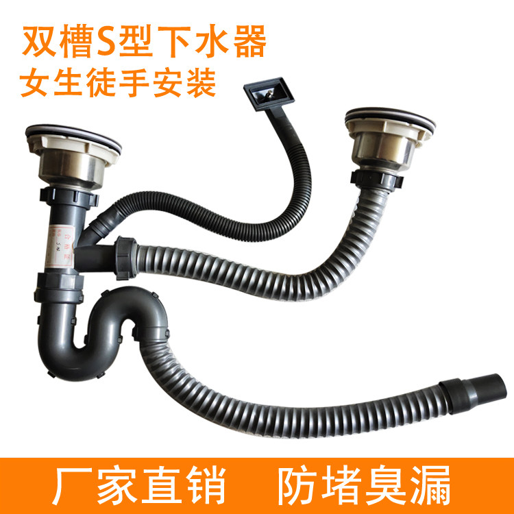 Kitchen sink 110 universal sewer fittings single and double sink sink drain deodorant drain set