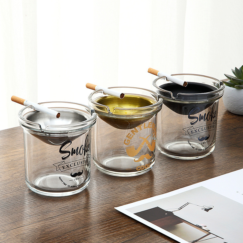 Anti-fly ash ashtray household car trend glass creative office living room anti-smoke funnel ashtray