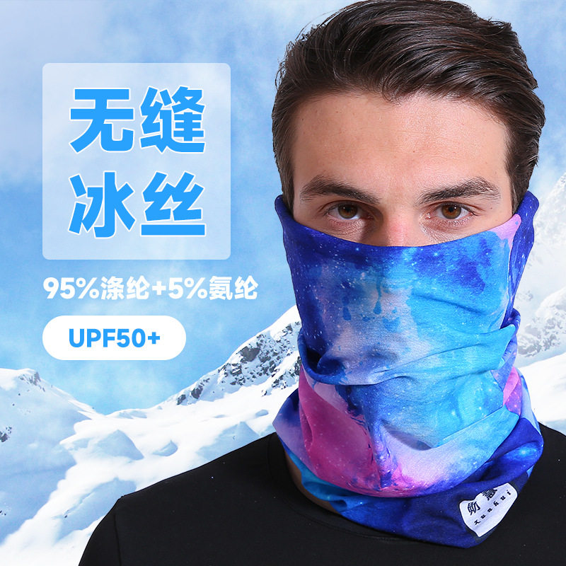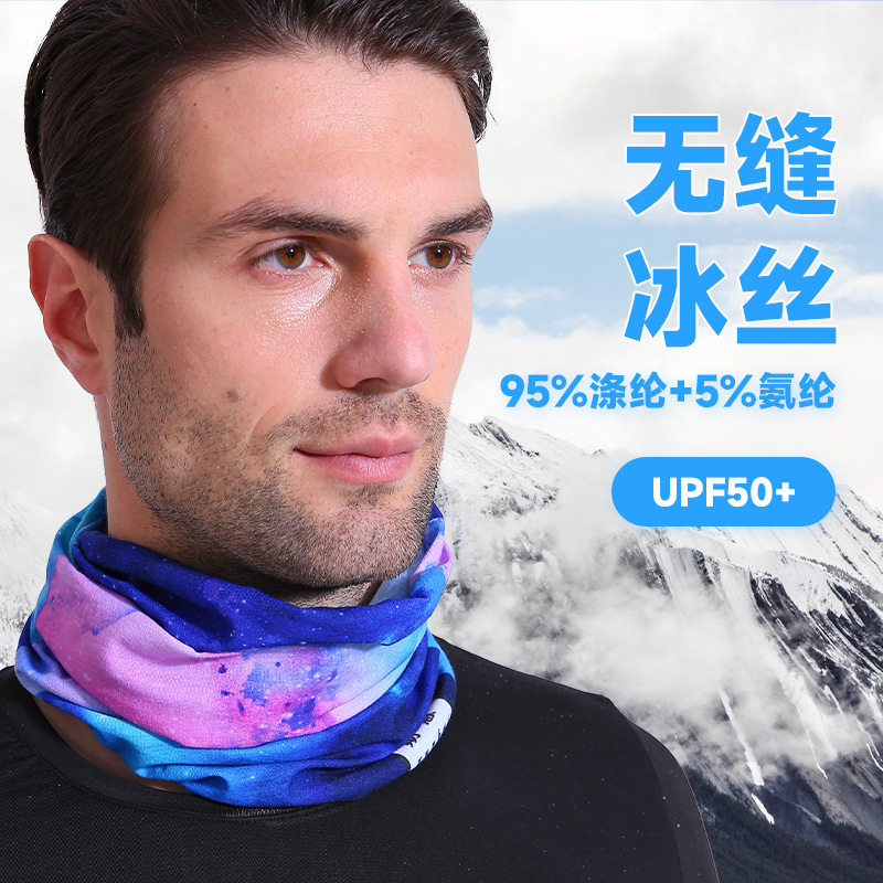 Outdoor sports seamless ice silk magic headscarf custom logo printing sunscreen mask neck cover riding scarf custom