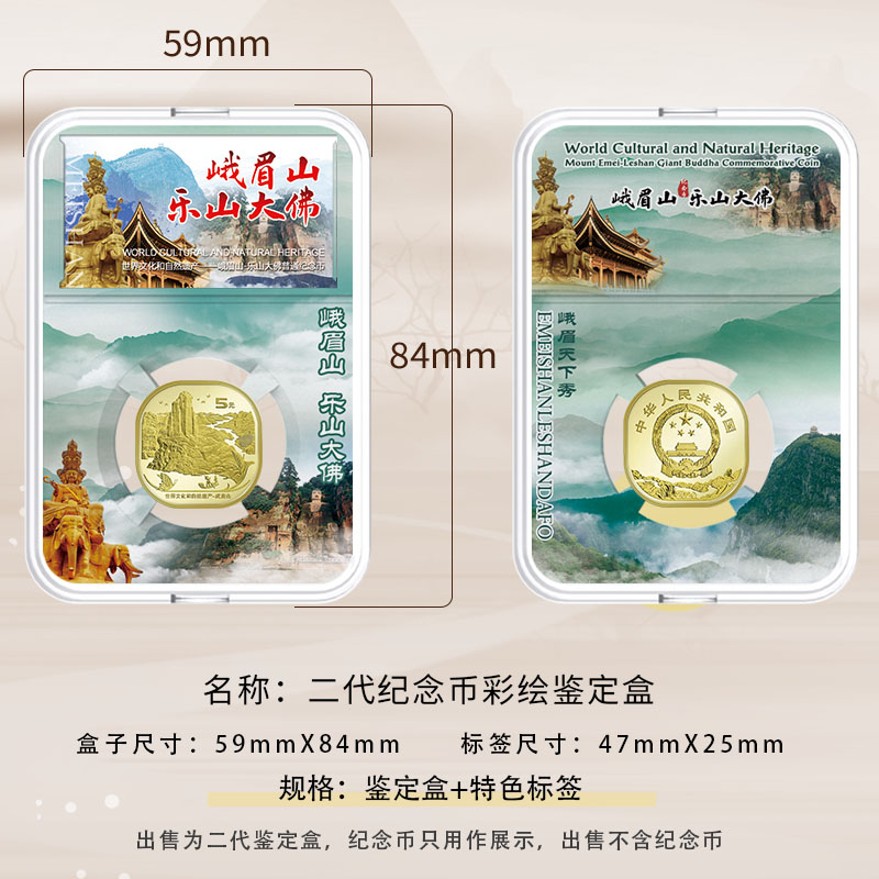 Emei Mountain Leshan Giant Buddha commemorative coin identification box 1 coin painted protection box 5 yuan rating coin collection box