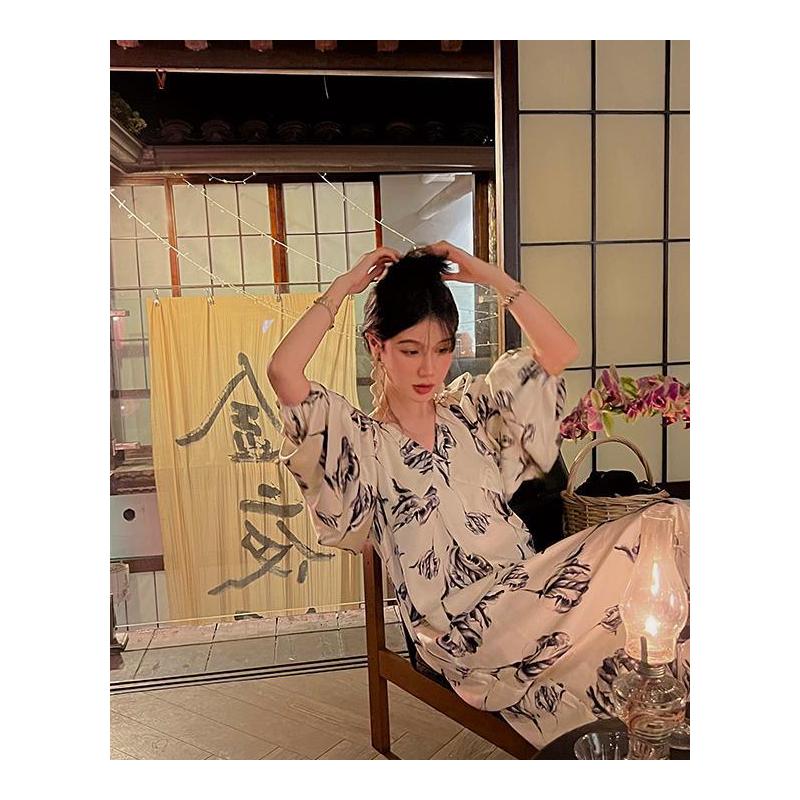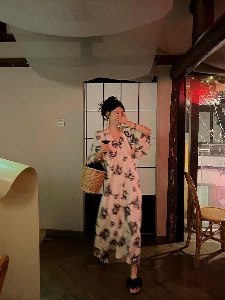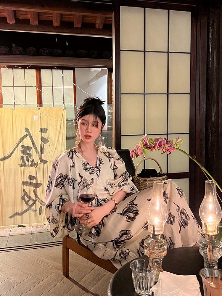 V Collar Butterfly Knot Lace Flowers Long Sleeve Foreign Dress Loose and Lean Senior Small Crowddesign Skirt