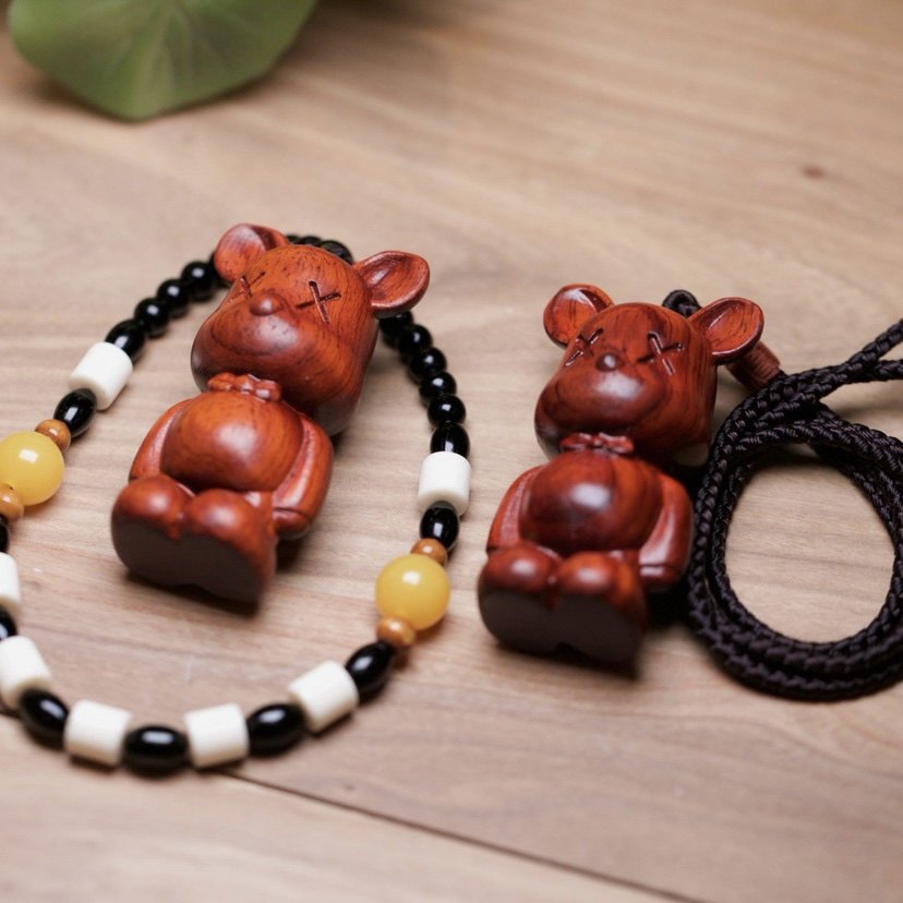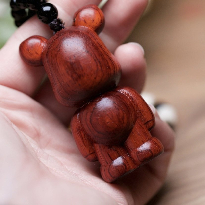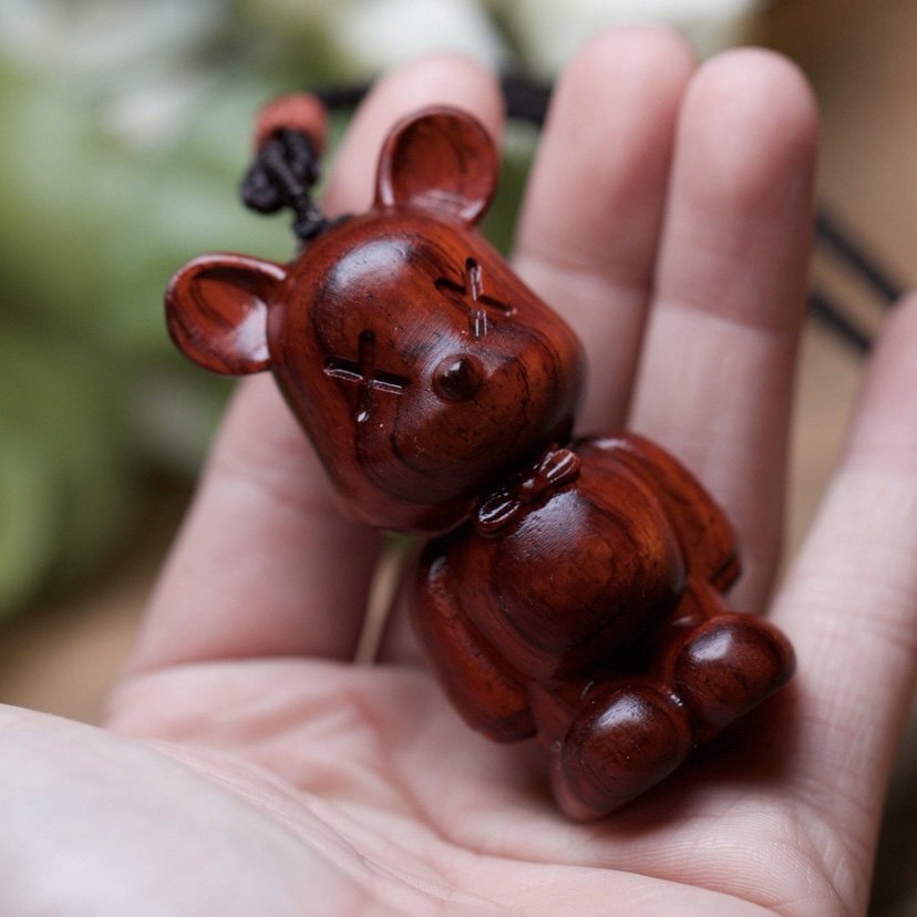 Boutique Wenwan Daye Red Sandalwood Mahogany Carving Mini Violent Bear Hand Neck Hanging Necklace Simple Gift