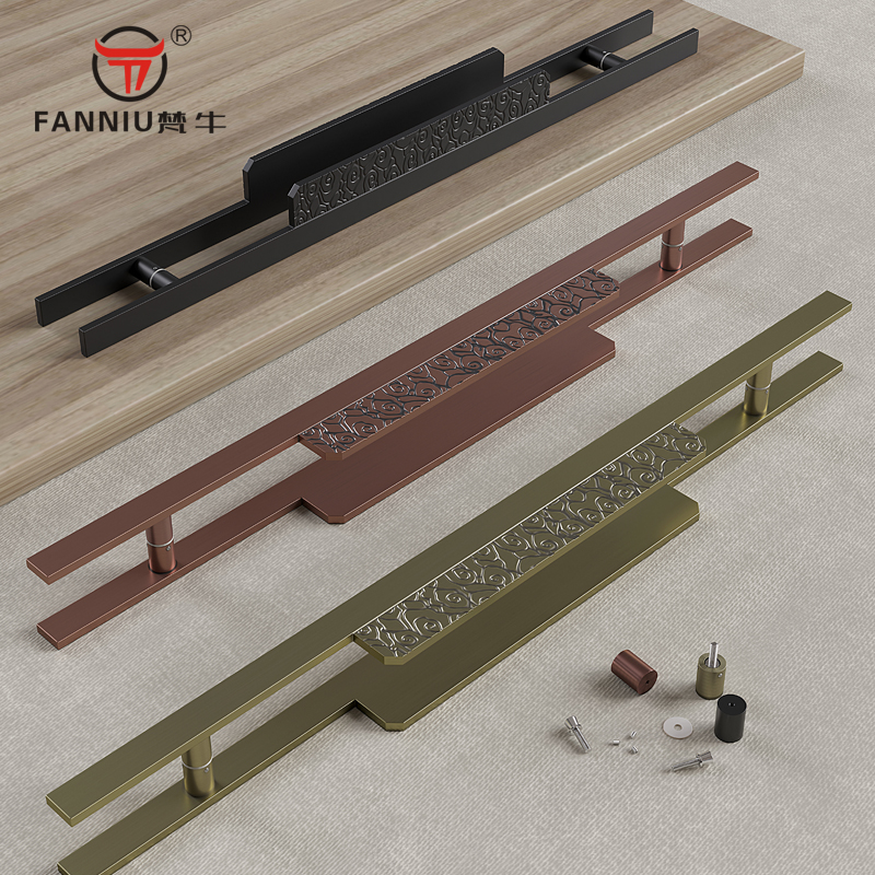 Double switch glass door handle antique copper long handle hotel push-pull wooden door surface mounted handle box door pair mounted door handle