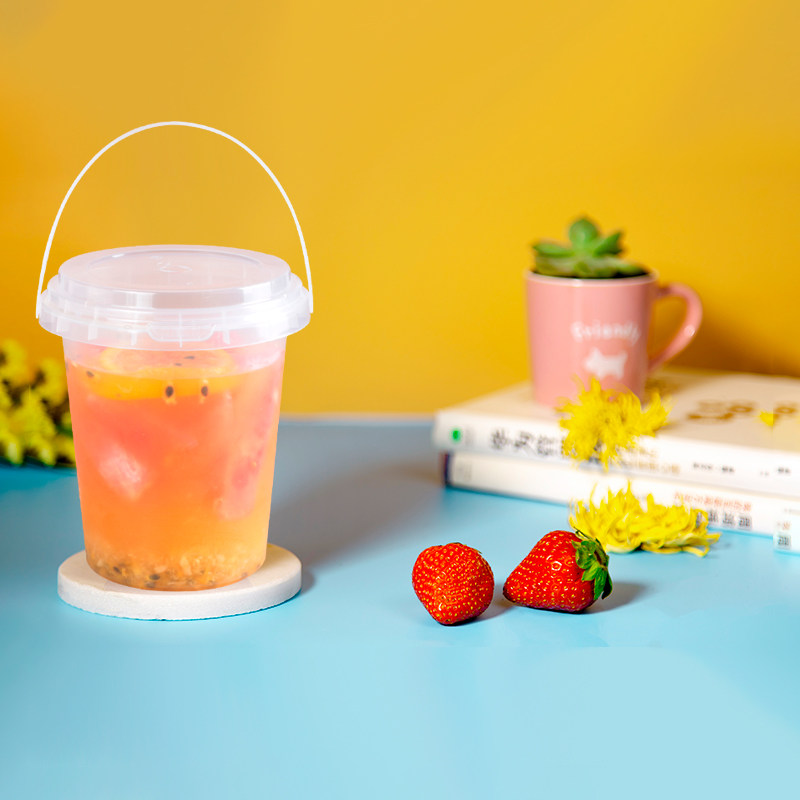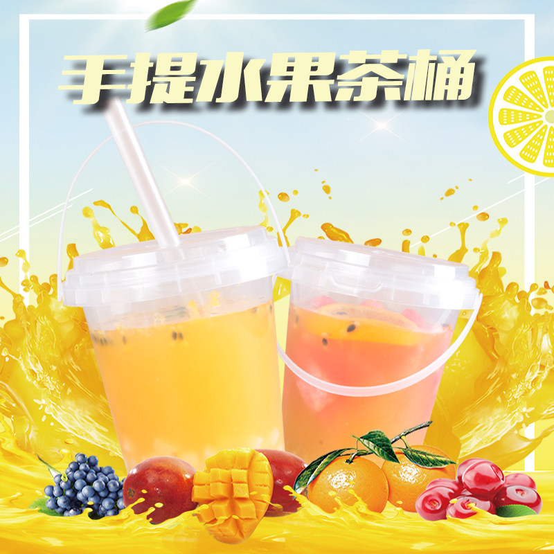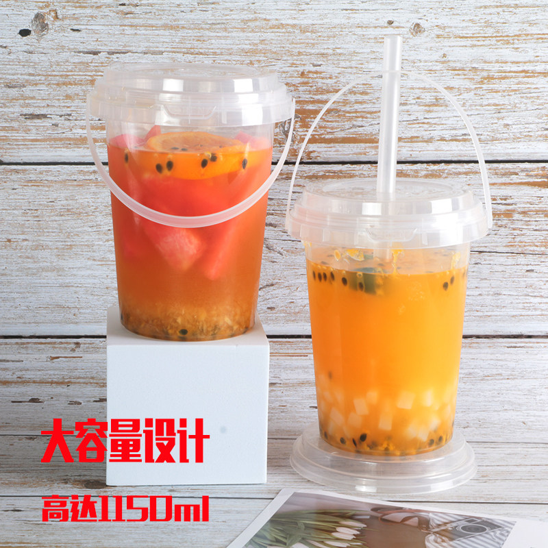 A bucket of fruit tea net red disposable milk tea cup commercial large-capacity overlord cup portable milk tea bucket 1000ml