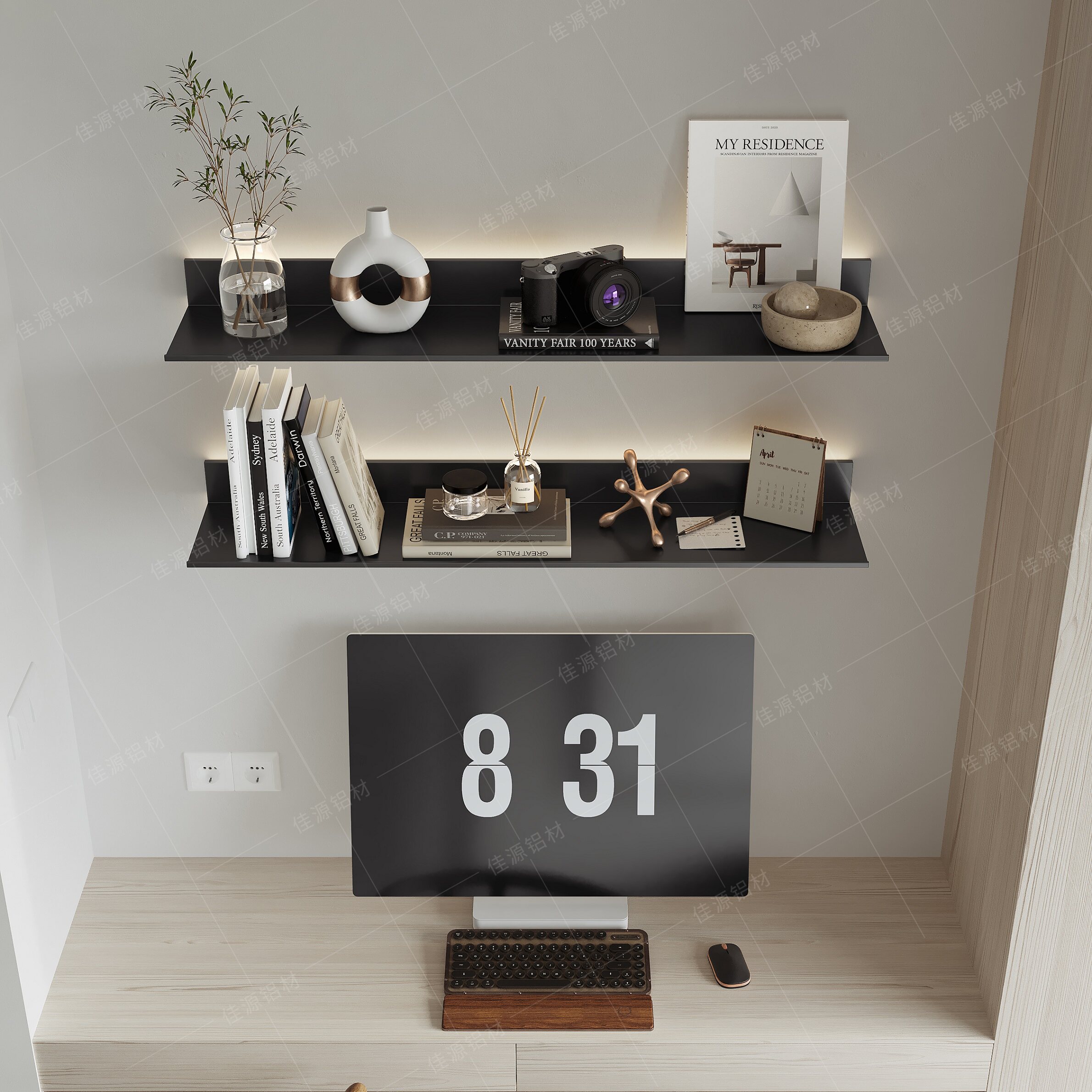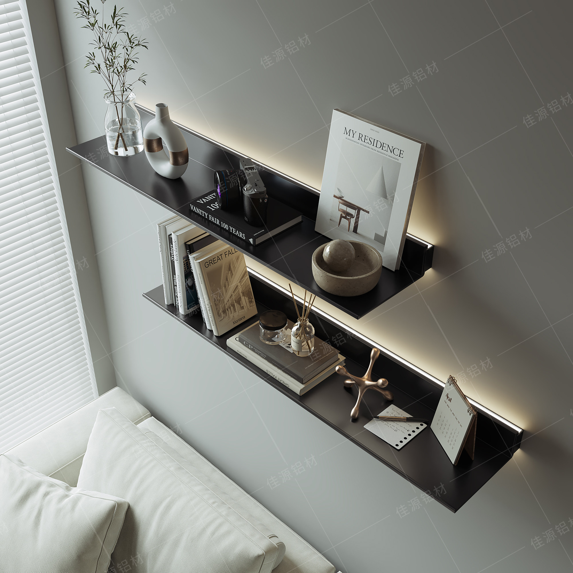 Aluminum alloy shelf built-in luminous LED lamp light lavish wine rack hanging wall Creative Bookshelf Brief Metal Laminate-Taobao