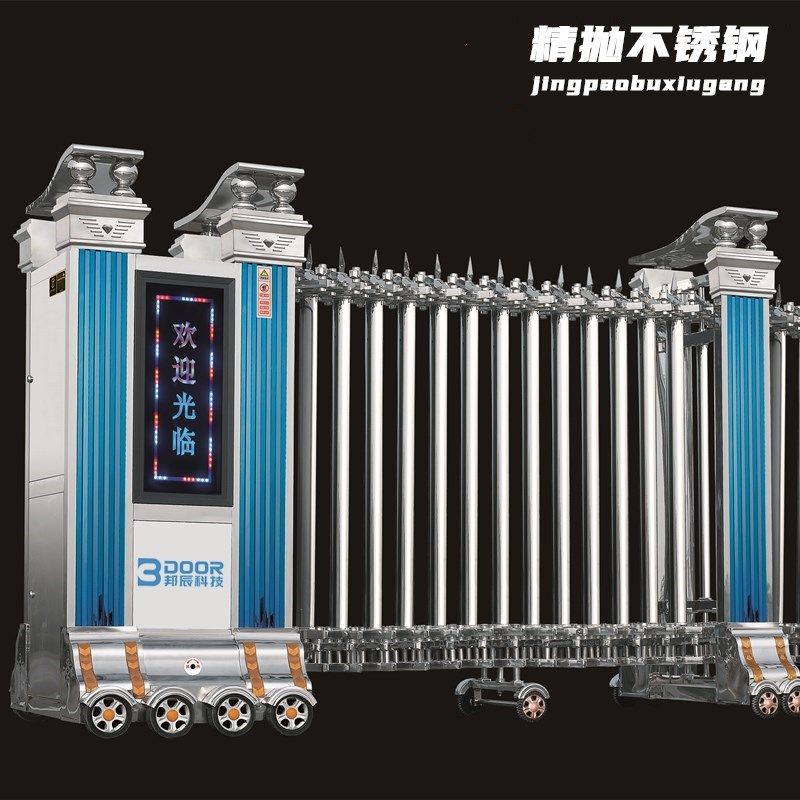 Wuhan telescopic door stainless steel aluminum alloy electric automatic folding suspension short section sliding school unit factory gate