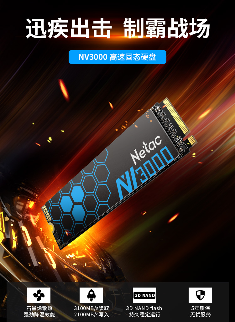 Netac 1TB 2TB SSD M 2 2280 Interface NV3000 Juying PCI-E 3 0 Graphene Cooling