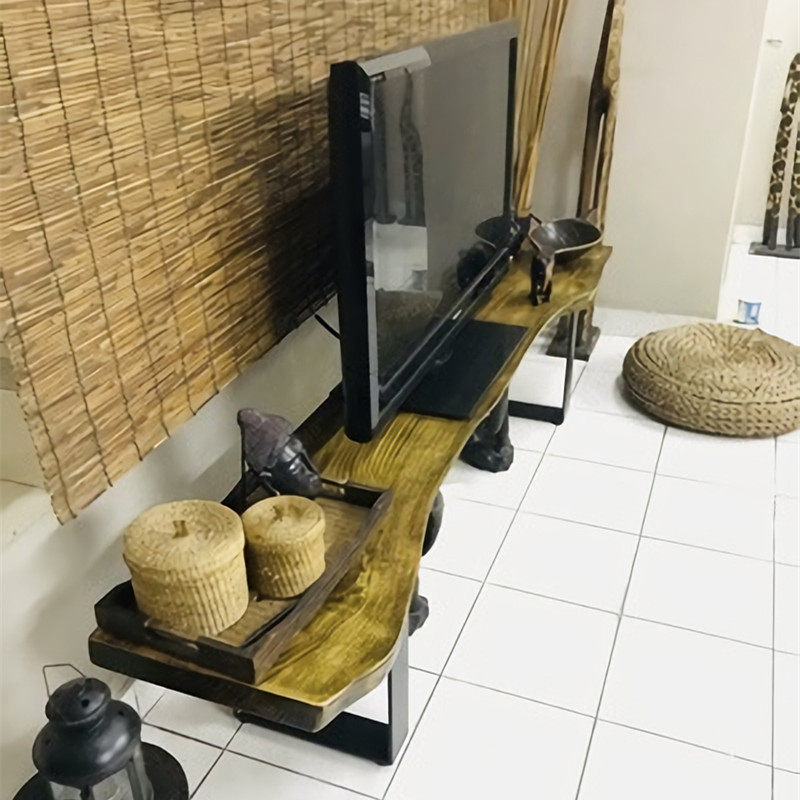 Nordic minimalist solid wood TV cabinet modern bedroom American small apartment living room creative retro log TV cabinet
