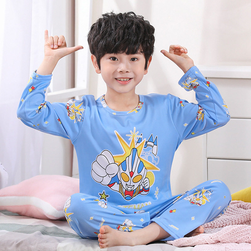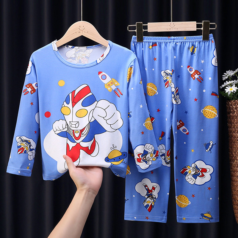 Ultraman pajamas children summer boy thin suit cotton silk cartoon big child baby child long-sleeved home