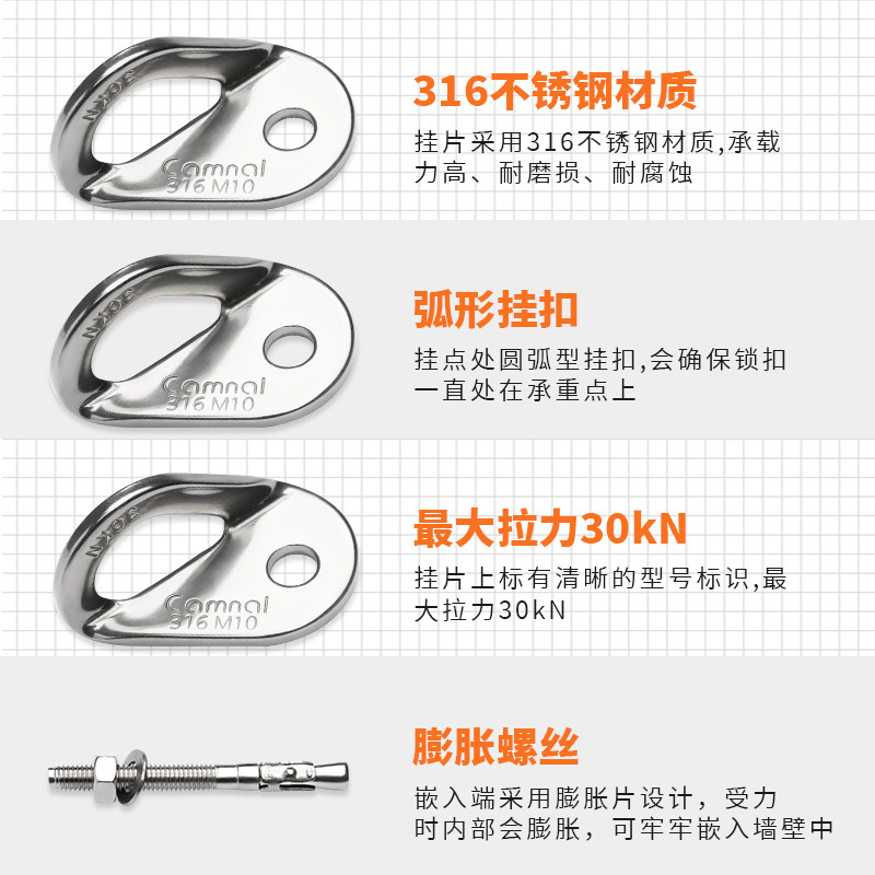 Rock Climbing Detachable Anchor Point Stainless Steel Rock Nail Hanging Sheet Expansion Nail Aerial Work Safety Rope Fixer Hanging Point-Taobao