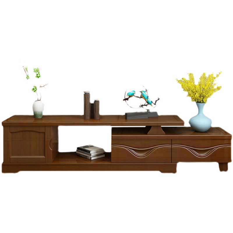 Solid wood small apartment TV cabinet coffee table combination 1 2 meters 1 5 meters modern minimalist Chinese style new telescopic TV cabinet