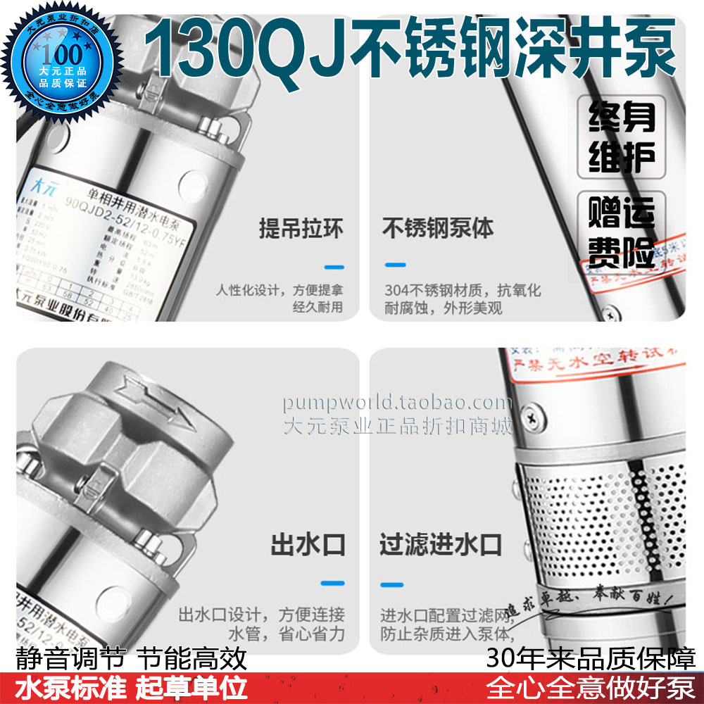 Dayuan 130QJ three-phase stainless steel deep well pump agricultural 10-20 square large flow deep water pump high lift submersible pump
