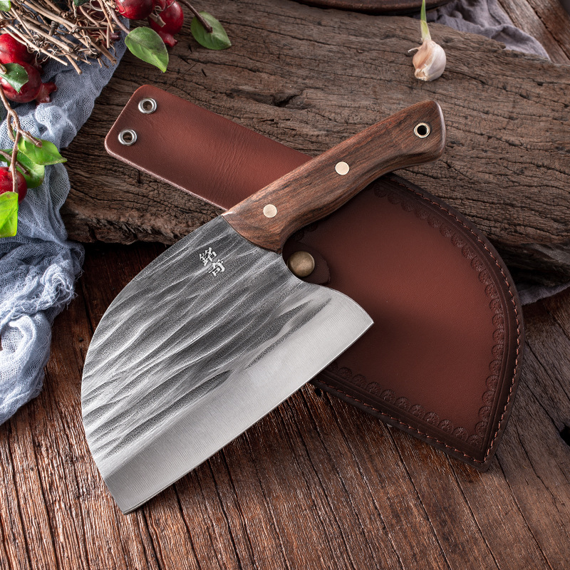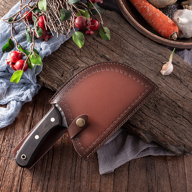 Old man knife leather sheath forging, cutting and cutting dual-purpose knife cover household round head lady's kitchen knife cutting chicken and meat knife library knife shell