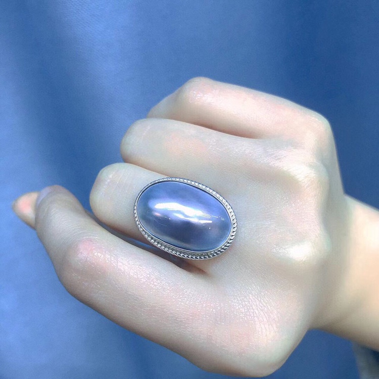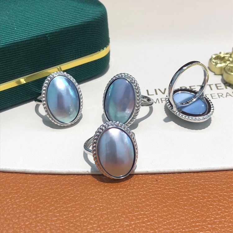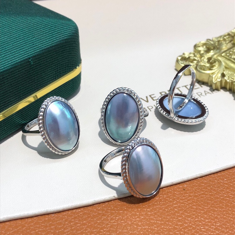 "Sea Sky Blue" Classic Elliptical Mabey Pure Silver Ring Indonesia Mabema Flowers-Taobao