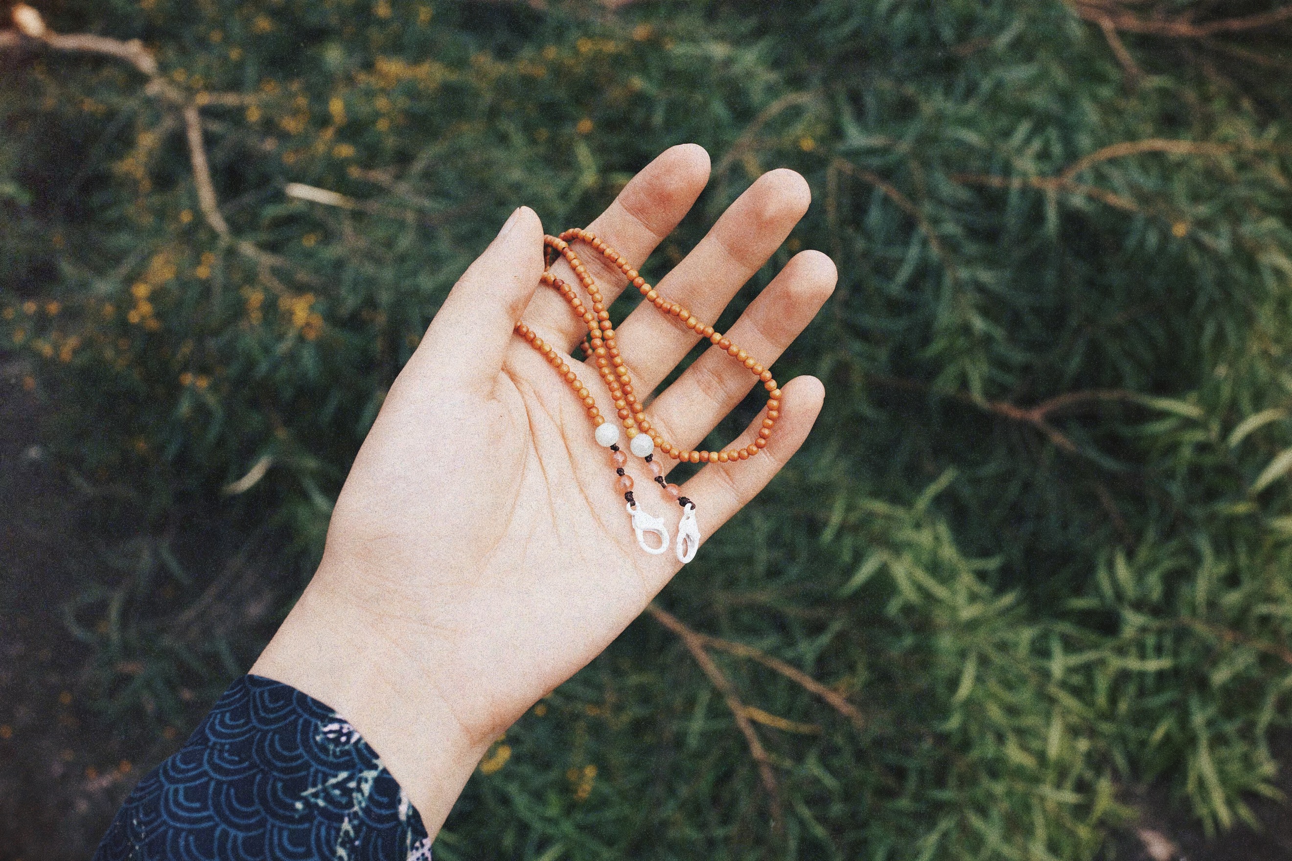 Handmade Blue Dyed Cotton String Olive Stone Necklace