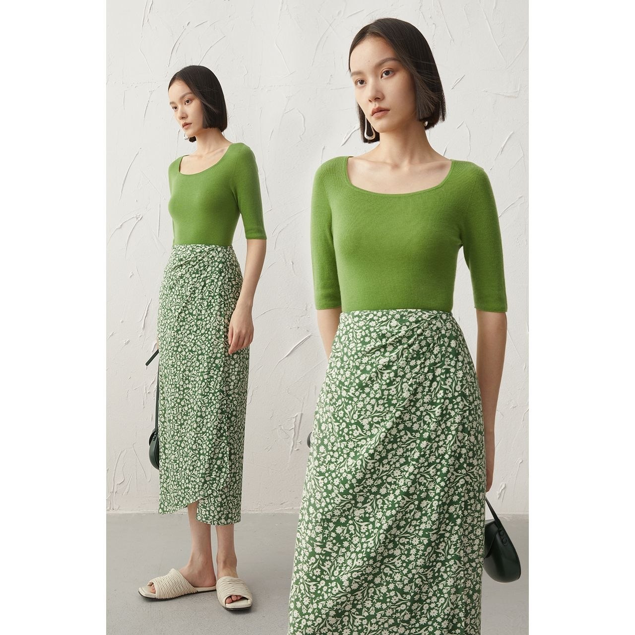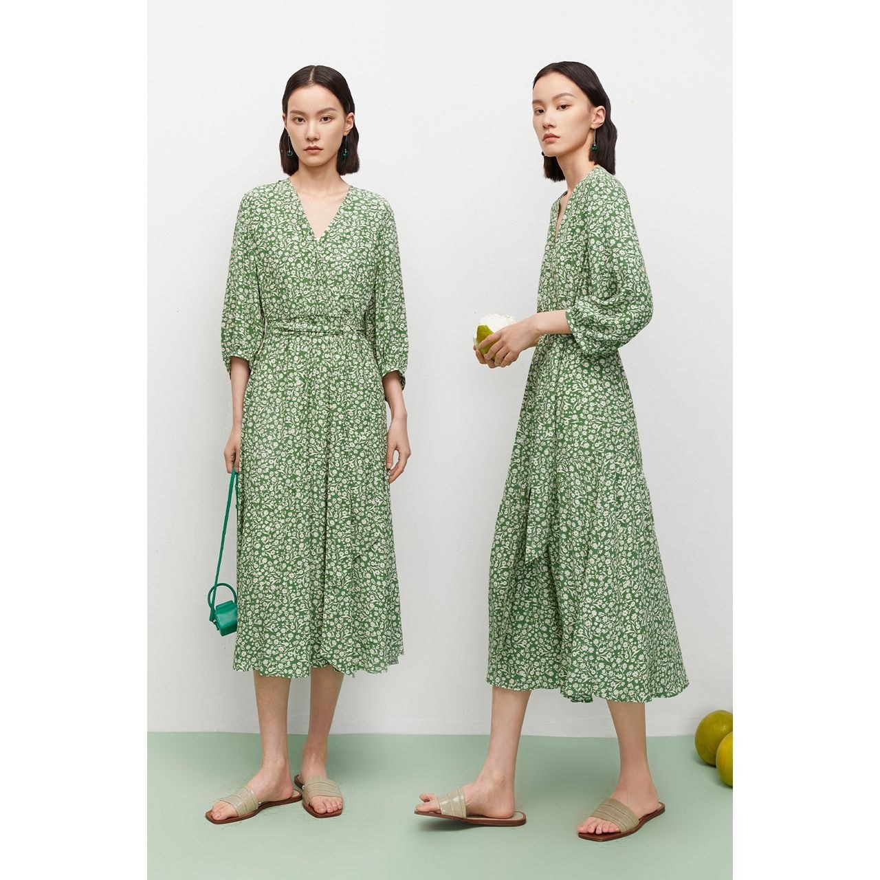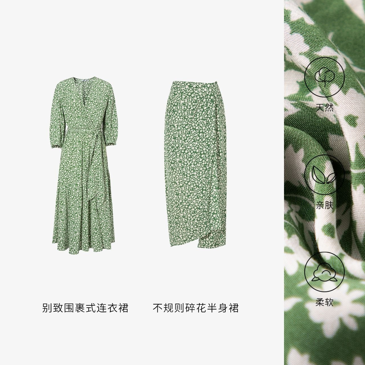 MM Mai Meng Mall same 2022 autumn dress new ice silk green French floral dress high-waist skirt woman