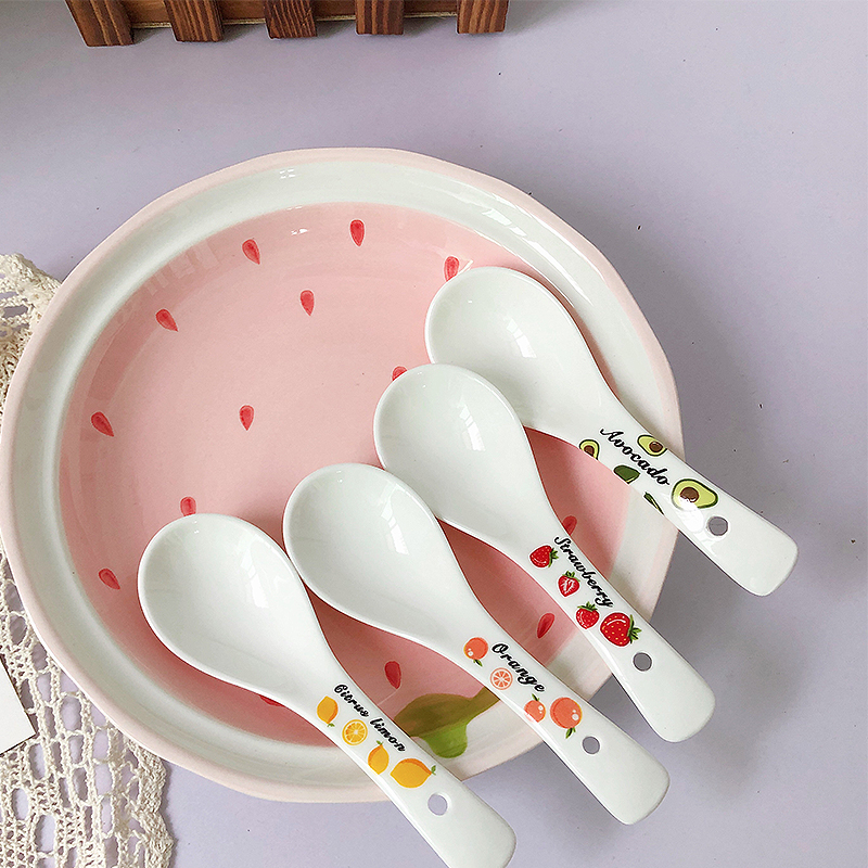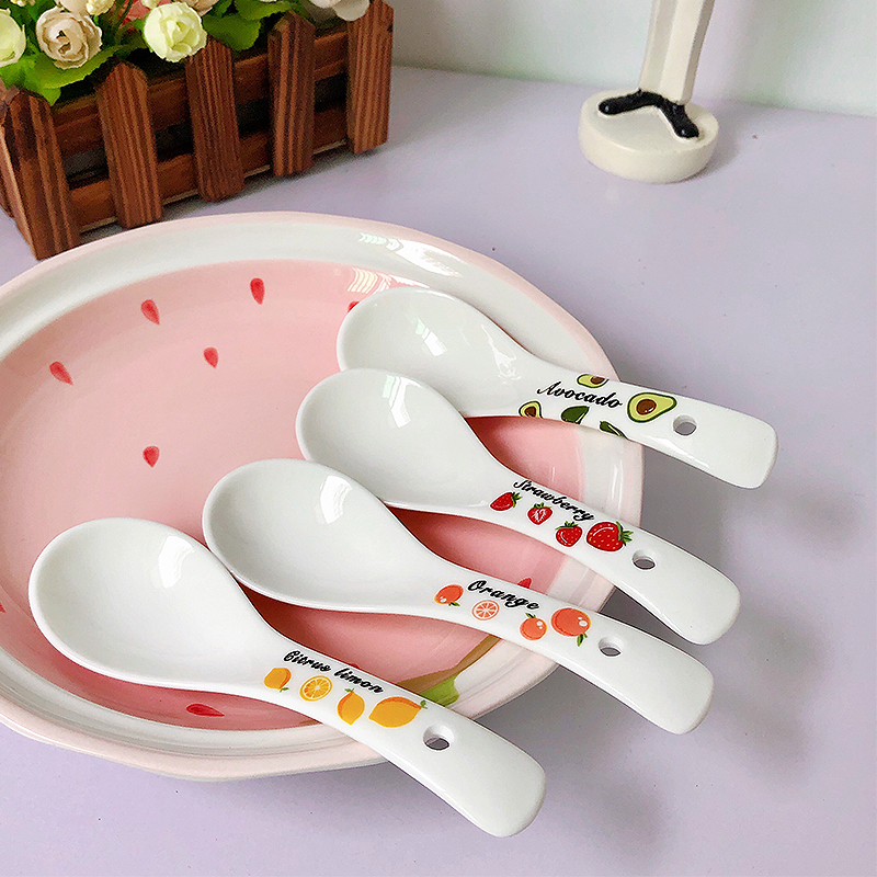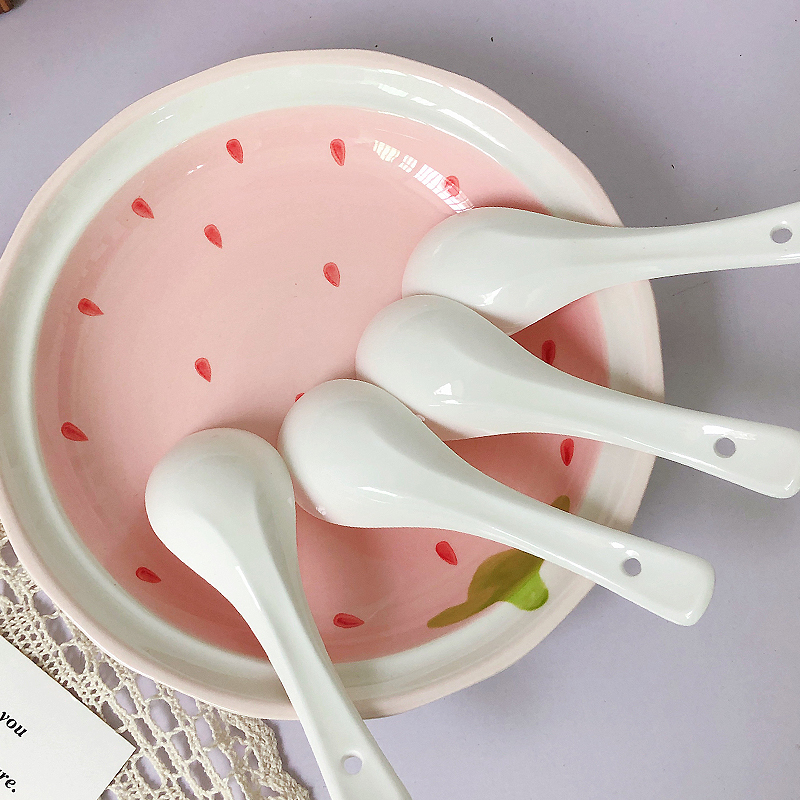 Clearance Japanese-style ceramic spoon small spoon long handle drinking soup home cute high-value rice spoon spoon spoon