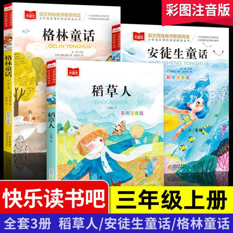Full set of 3 Green Fairy Tales Andersen Fairy Tales of the Fairy Tale of the Straw Man Book Full of the Phonetic Edition of the 3rd Year Book Primary School Pupils-Taobao