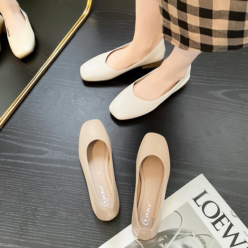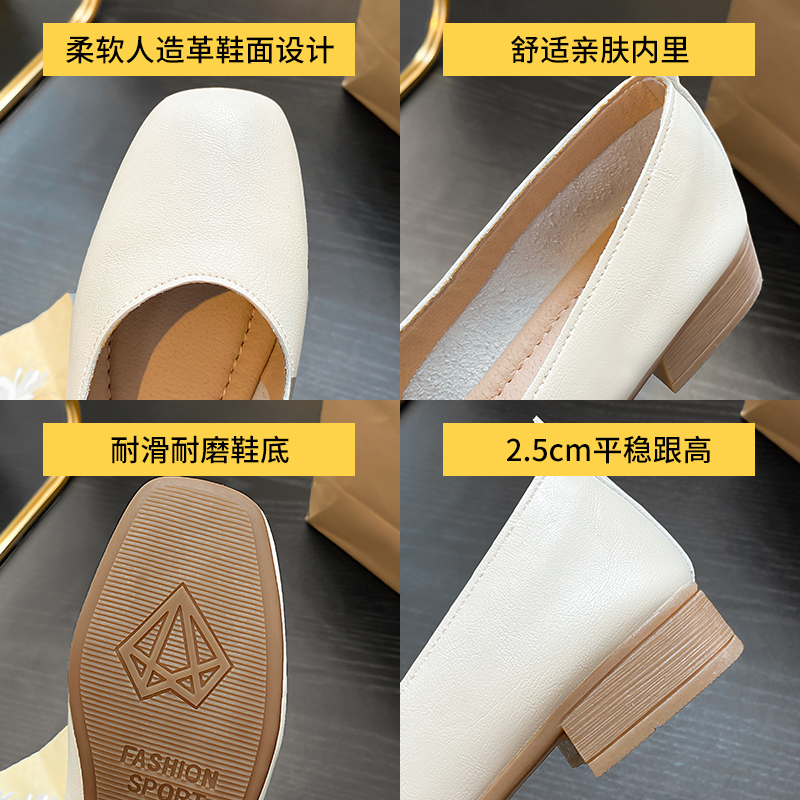 Mary Jane single shoes women's summer 2022 new French small leather shoes flat bottom grandma shoes one pedal soft bottom scoop shoes