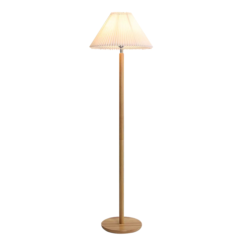 Japanese retro solid wood floor lamp living room sofa wabi-sabi style bedroom bedside pleated vertical simple floor lamp