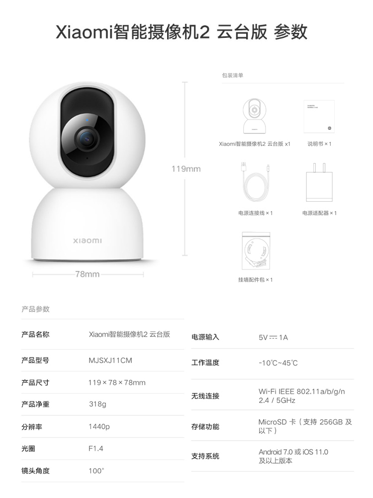 Xiaomi camera Yun Tai 2 5K HD night vision 4 megapixel 360 degree panoramic home wifi mobile phone remote monitor indoor pet camera smart camera 2k set