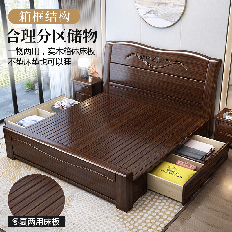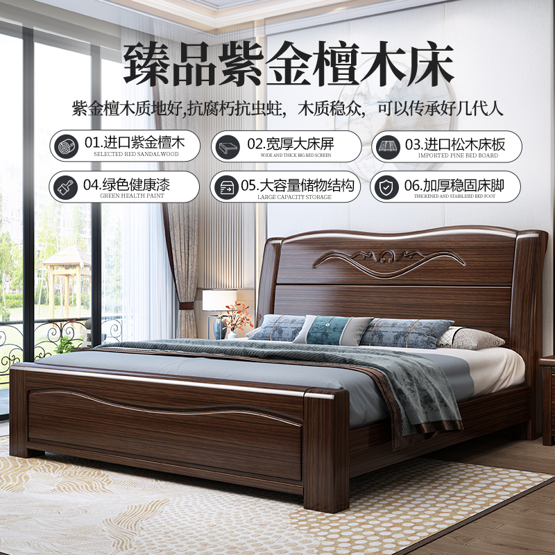 Purple Gold Sandalwood Solid Wood Bed 1 8 m Master Bedroom With Double People's Bed Modern Simplicity About 1 5m Chinese Storage Light Lavish Wedding Bed