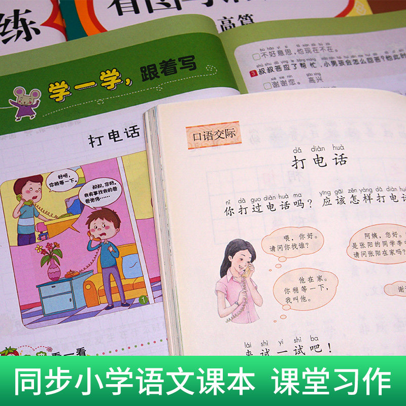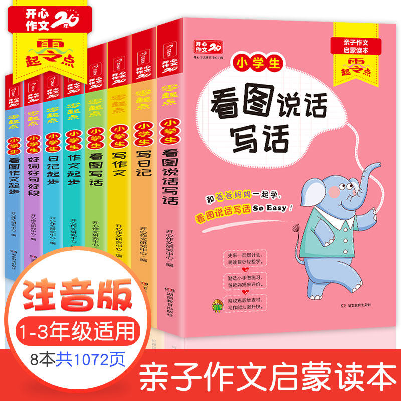 Happy view of the drawings writing in the first or second grade of the fingers college full school students read and understand training pictures speech and writing daily practice of reading language editing special synchronous extracurricular books required