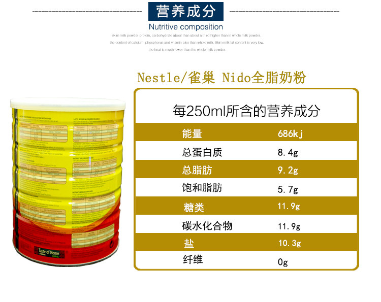 Full-fat high calcium milk powder nido, Nestle children, Nestle children, UK adult students, middle-aged and elderly pregnant women imported original suit